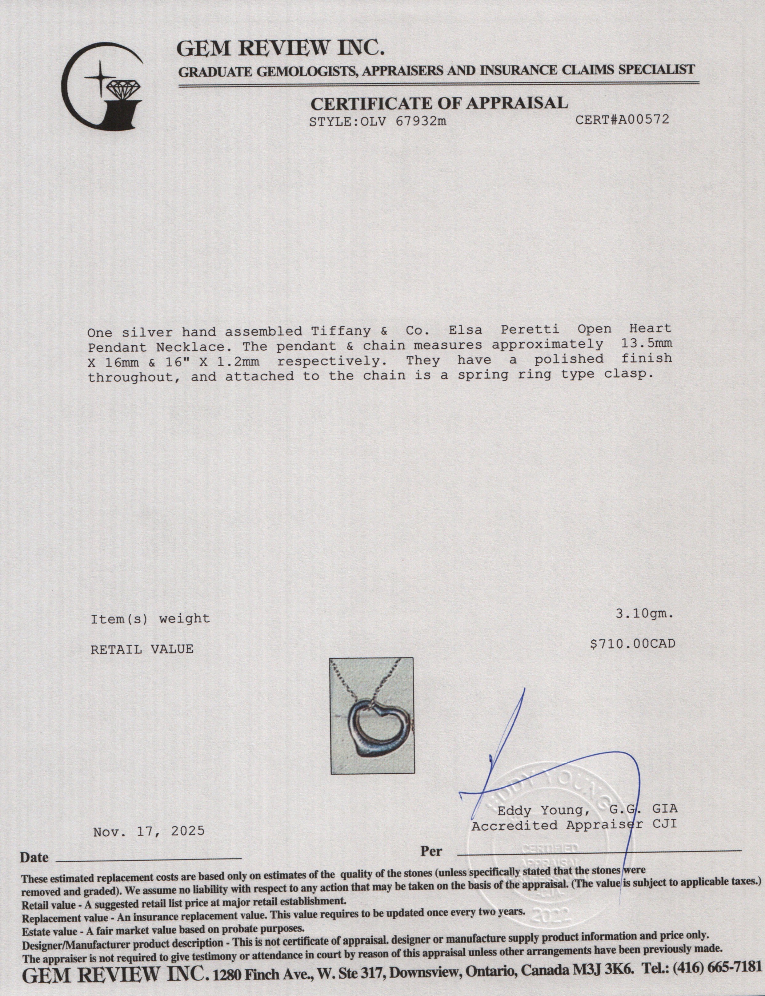 Elsa Peretti Sterling Silver 16 MM Open Heart Pendant Necklace