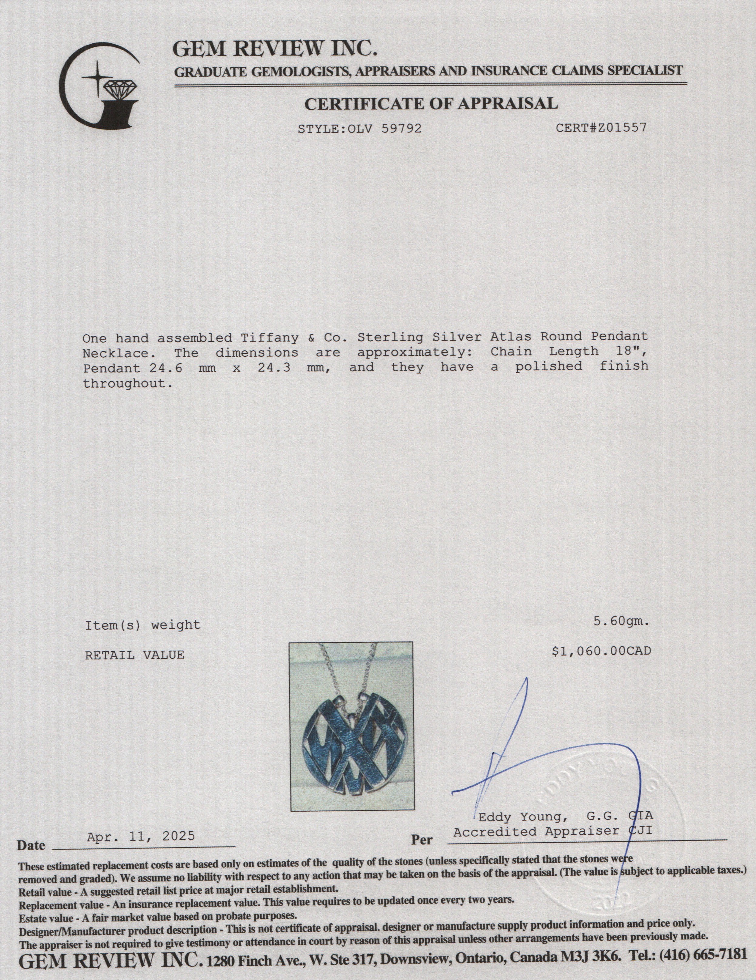 Chain Length 18", Pendant 24.6 mm x 24.3 mm