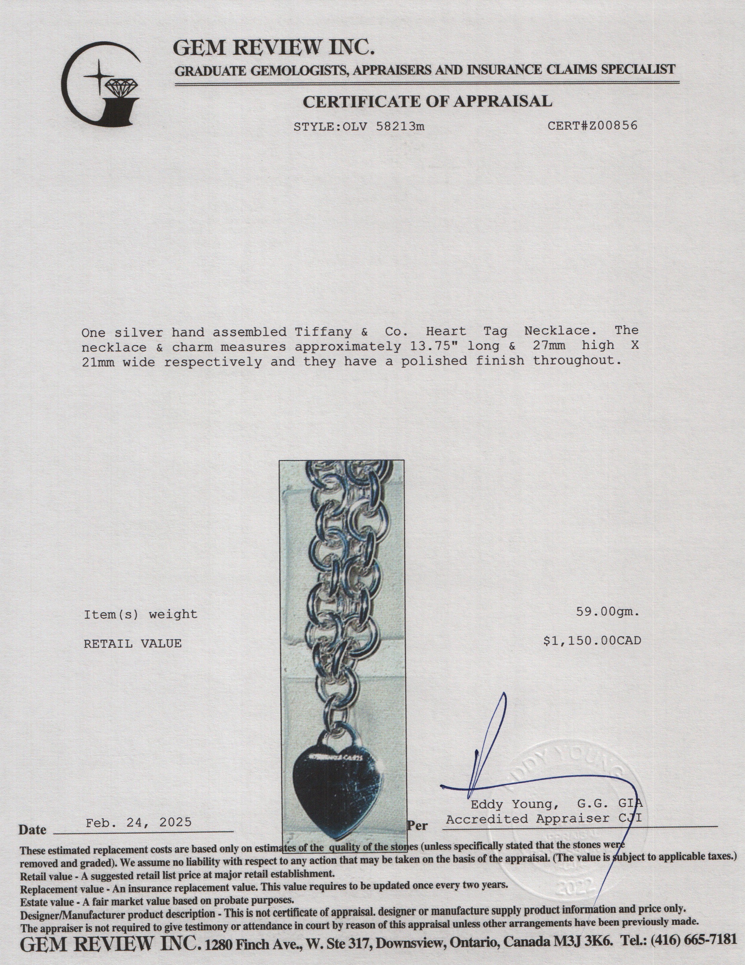 Length 13.75", Heart Tag 27 mm x 21 mm