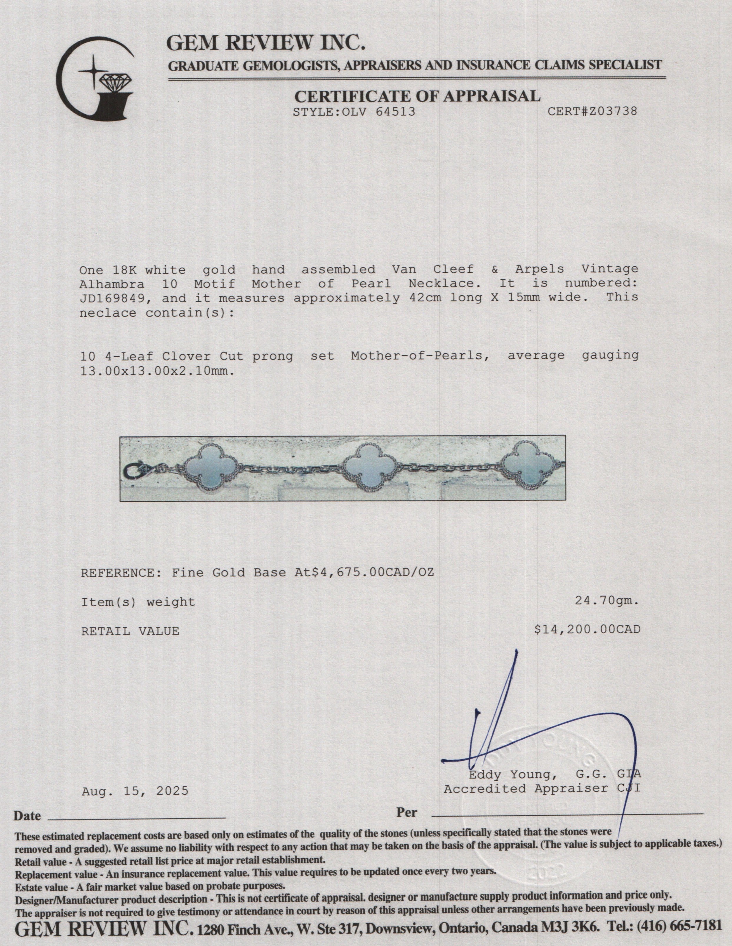 18k White Gold Vintage Alhambra 10 Motif Mother of Pearl Necklace
