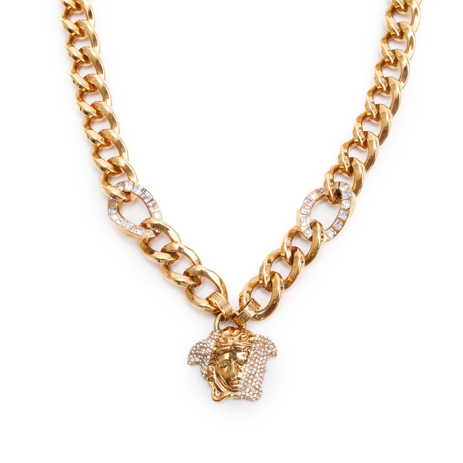 Gold Plated Crystal Medusa Thick Chain Pendant Necklace w/ Box