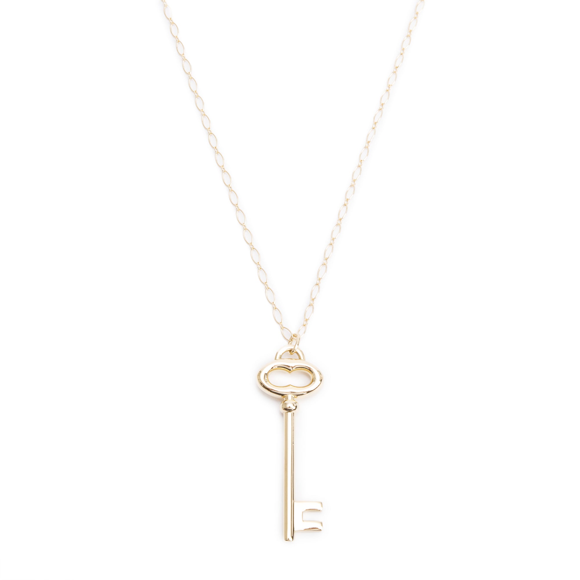 18k Yellow Gold Vintage Oval Key Pendant Necklace w/ Box