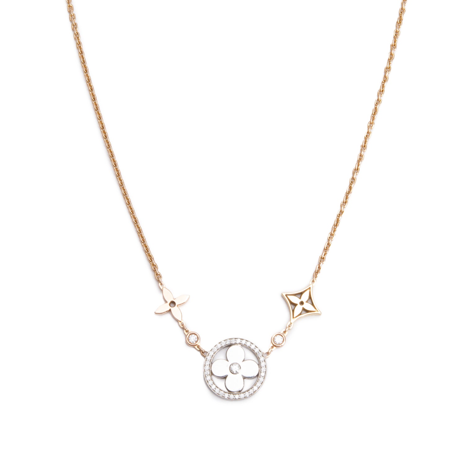18k Rose, Yellow & White Gold Diamond Idylle Blossom XL 3 Golds Necklace w/ Box