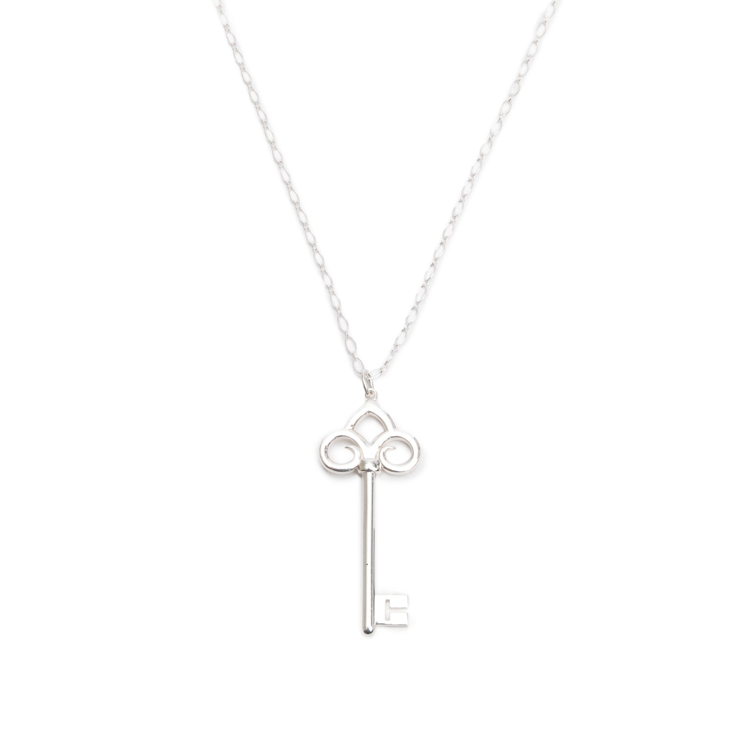 Sterling Silver Large Fleur de Lis Key Pendant Necklace