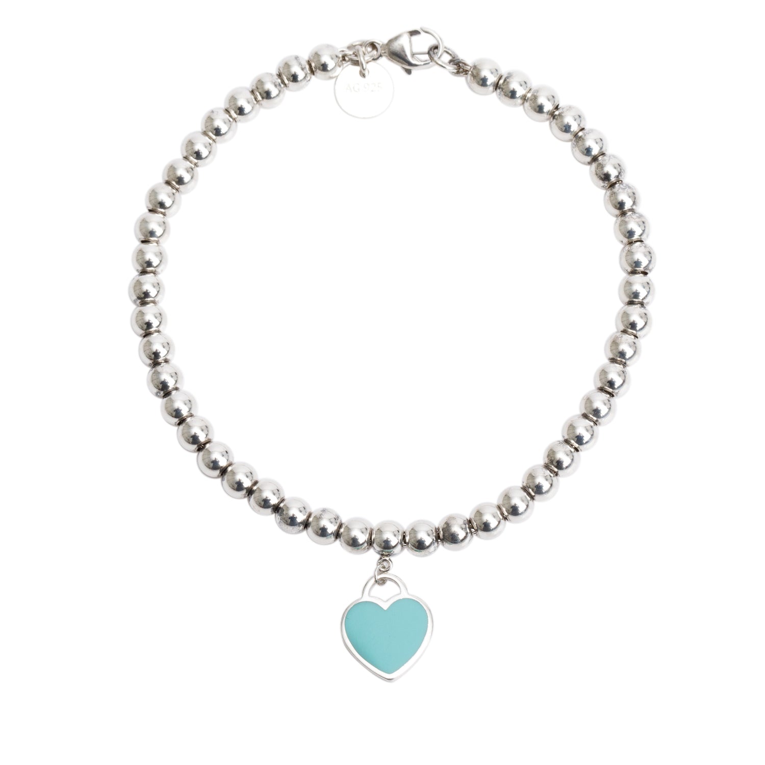 Sterling Silver Return to Tiffany Mini Heart Tag 4 MM Bead Bracelet with Blue Enamel