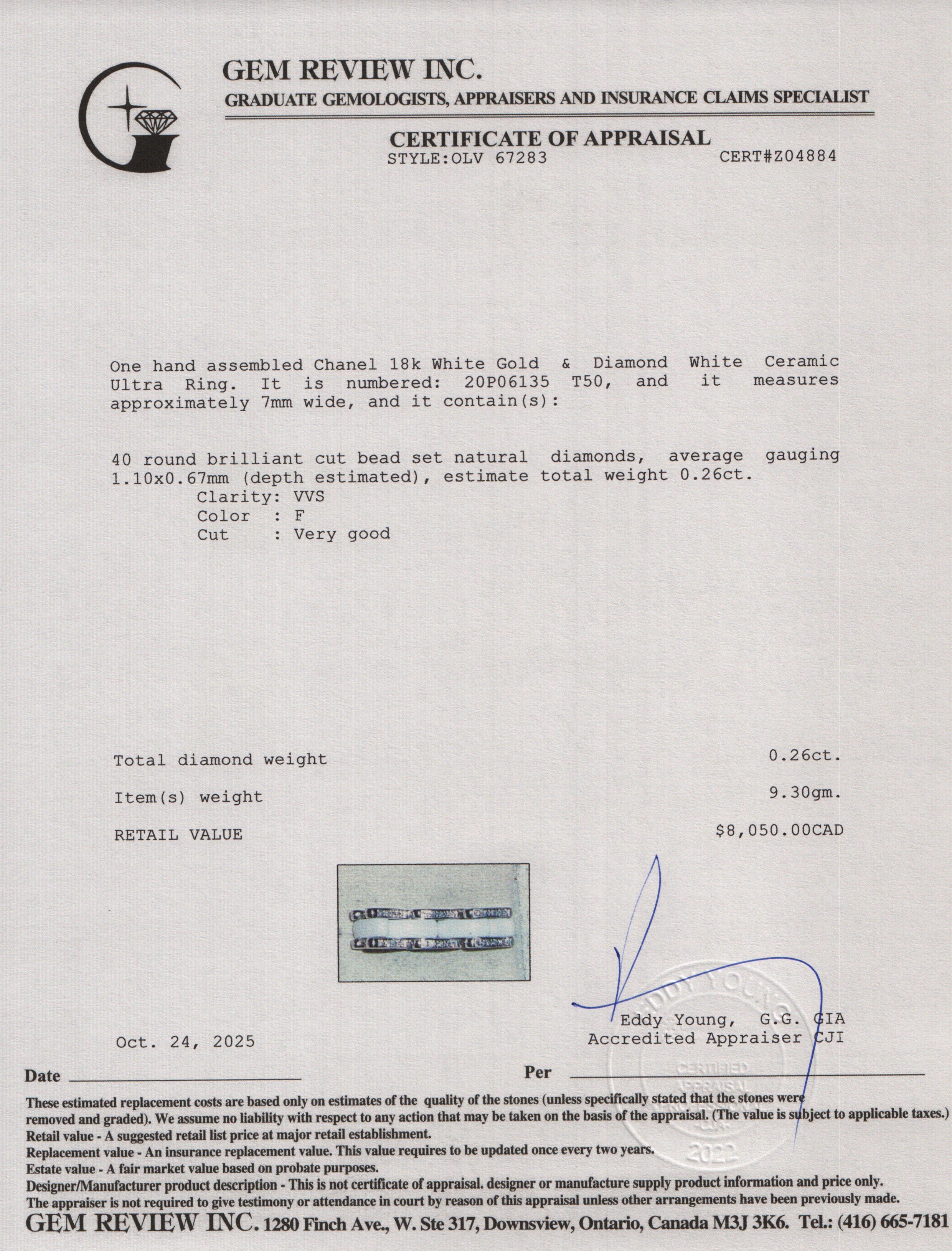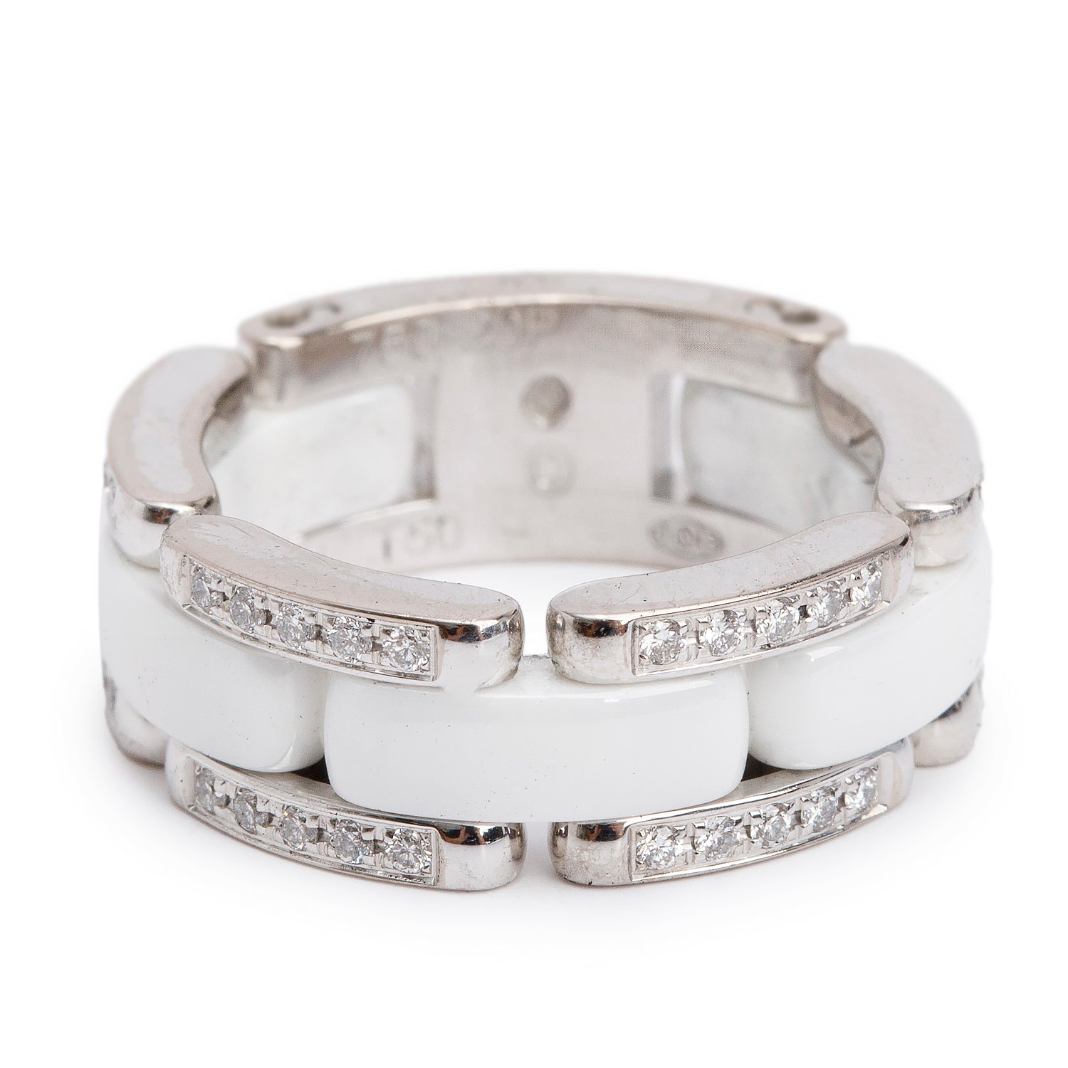 18k White Gold & Diamond White Ceramic Ultra Ring, Size 5 w/ Box