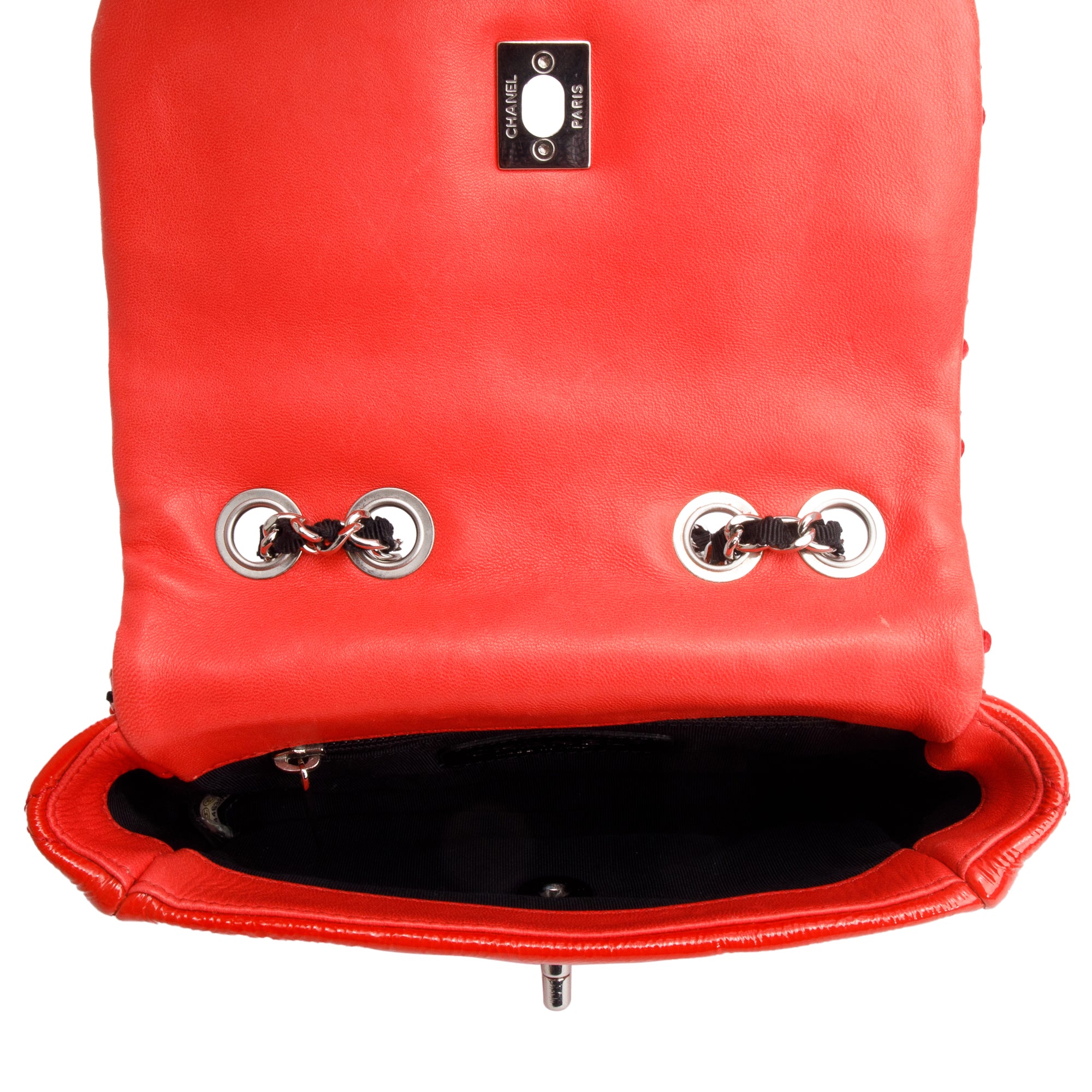 Red Patent Leather Woven Stitch CC Mini Full Flap Bag