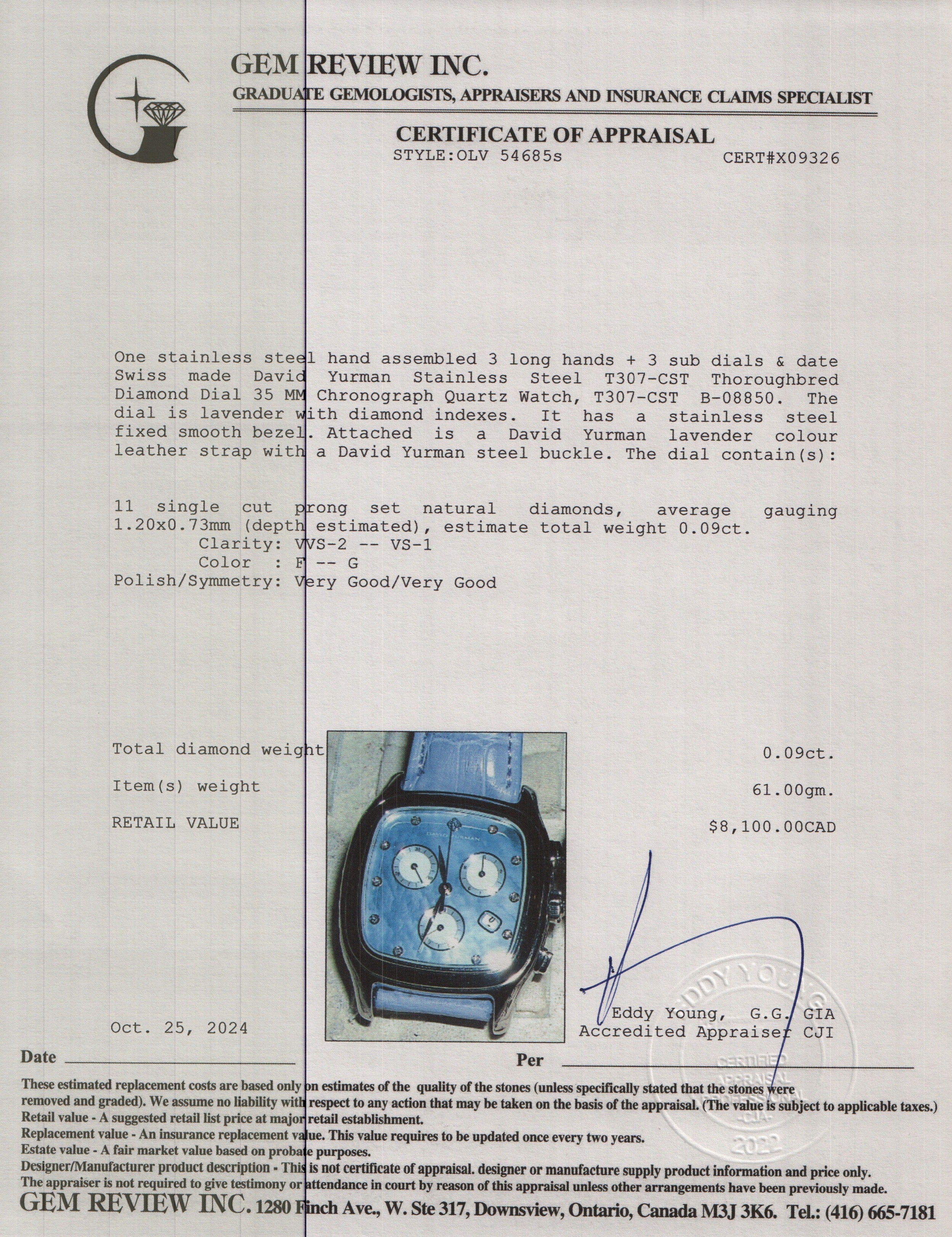 Stainless Steel T307-CST Thoroughbred Diamond Dial 35 MM Chronograph Quartz Watch w/ Box & Papers