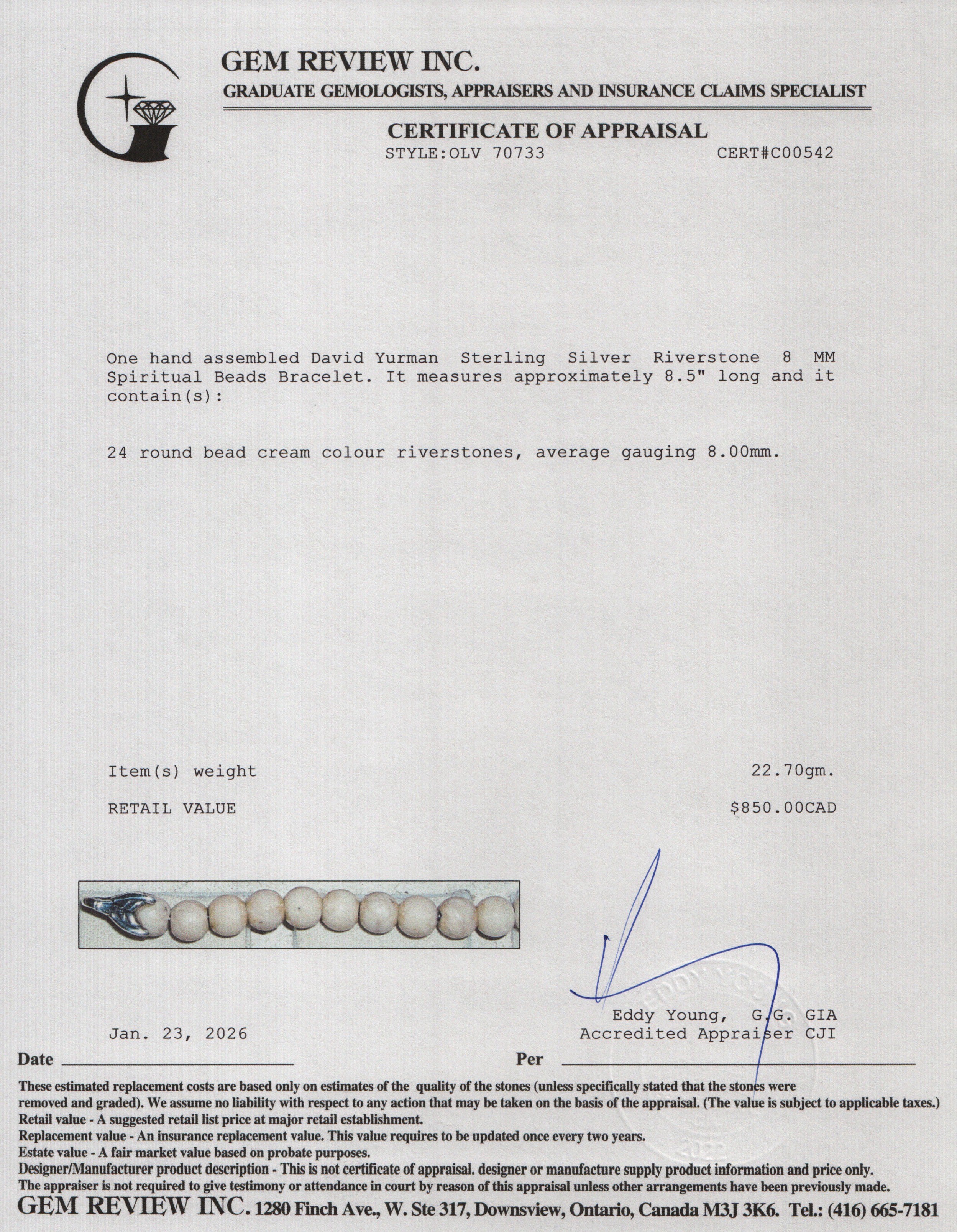 Sterling Silver Riverstone 8 MM Spiritual Beads Bracelet