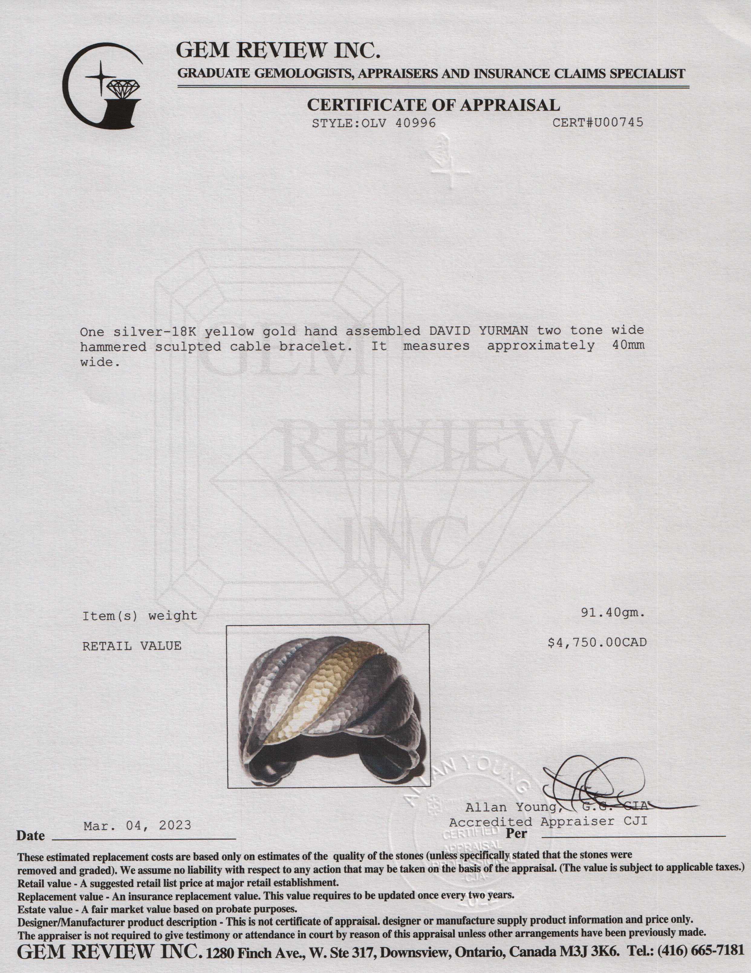 David Yurman Two-Tone Wide Hammered Sculpted Cable Bracelet