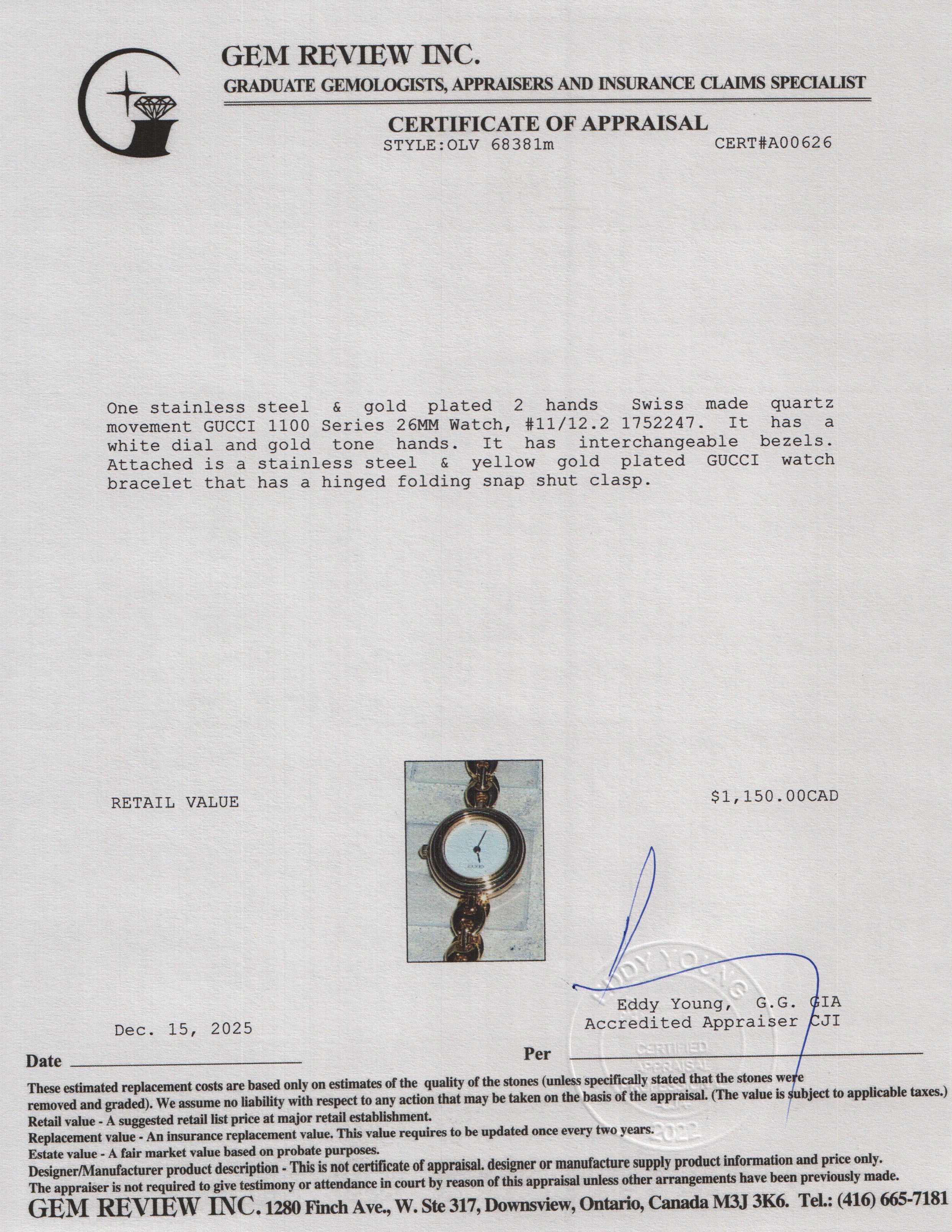 Gold Plated Stainless Steel 1100 Series 26 MM Watch w/ Box & 4 Multicolour Bezels