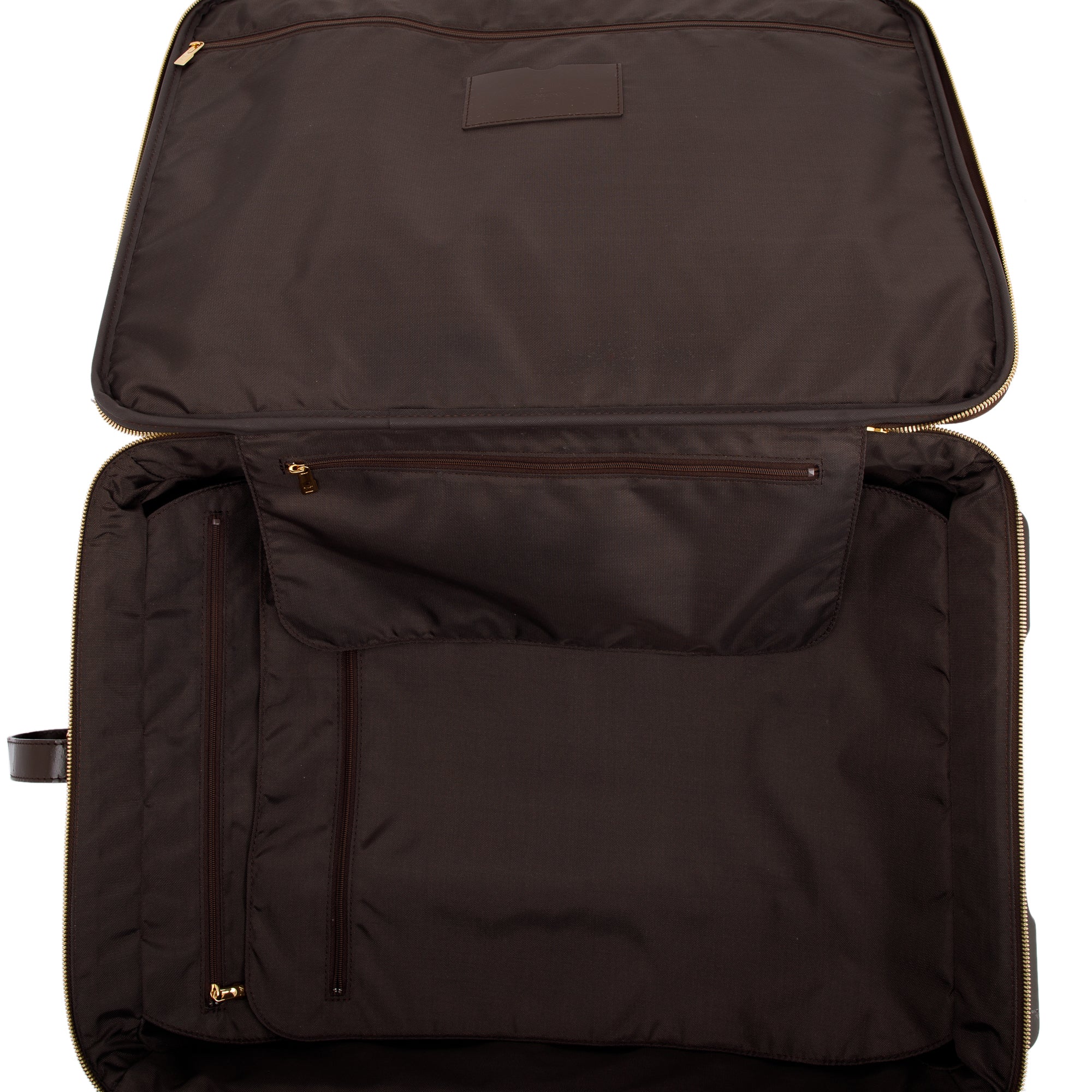 Condition: Very Good, slight scuffs at exterior leather trim and handles, some marks and scratches at wheels and base, clean interior.