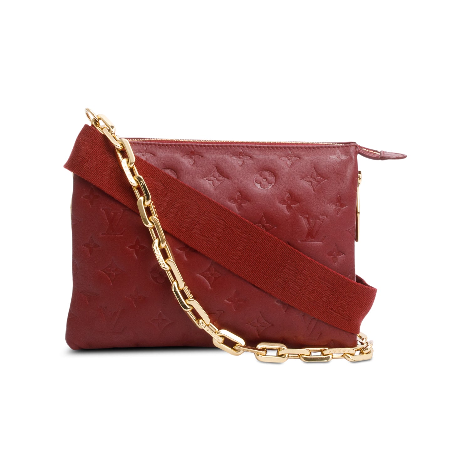 Red Monogram Embossed Lambskin Leather Coussin PM w/ Straps