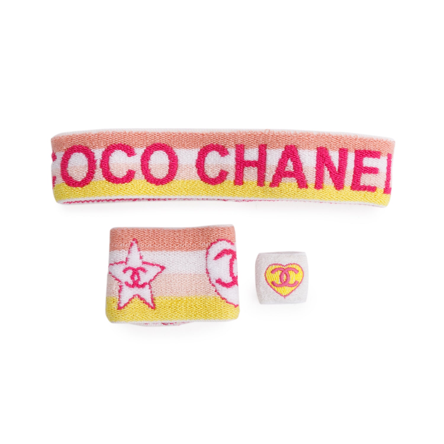 Muliticolor Terry Cloth Sport Line Coco CC Logo Sweatband Set