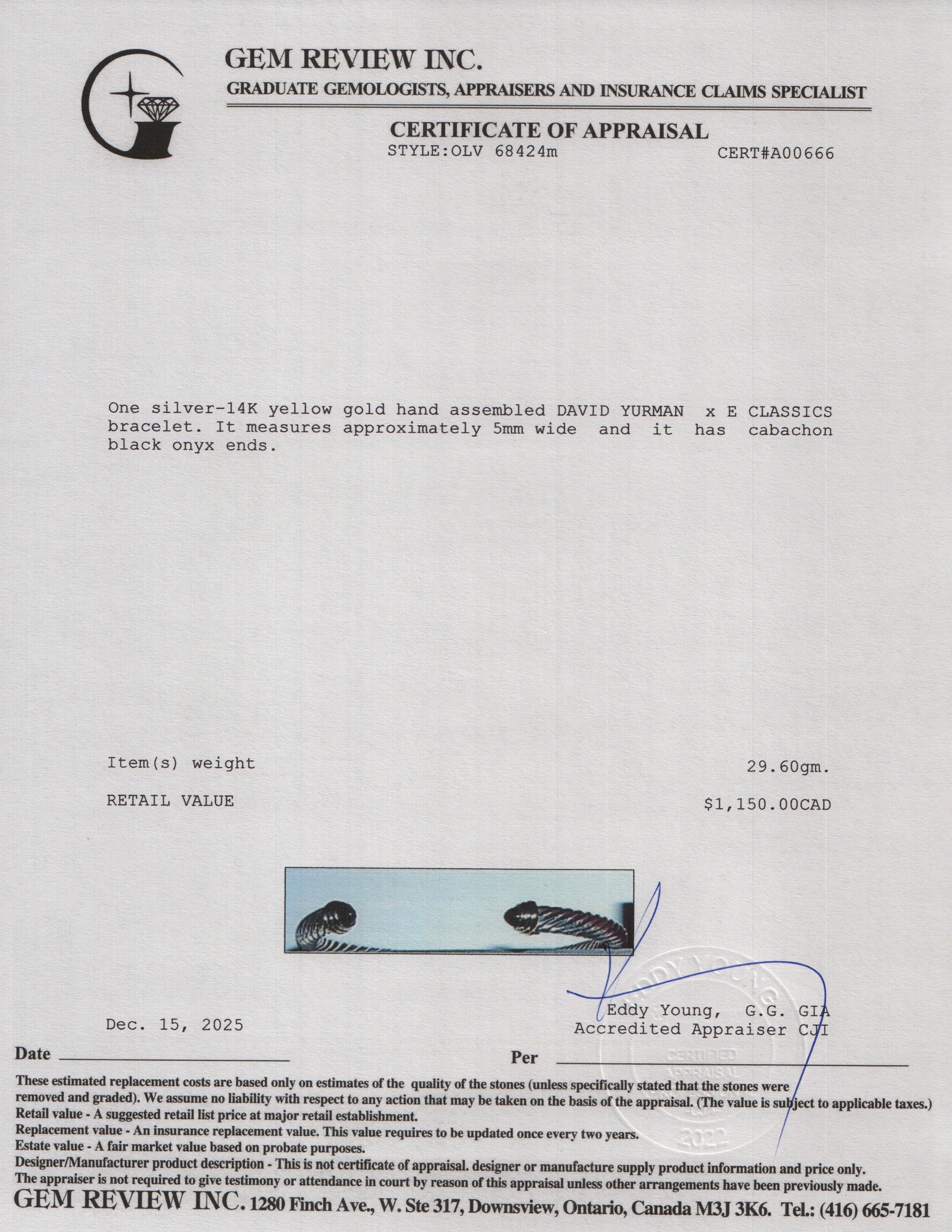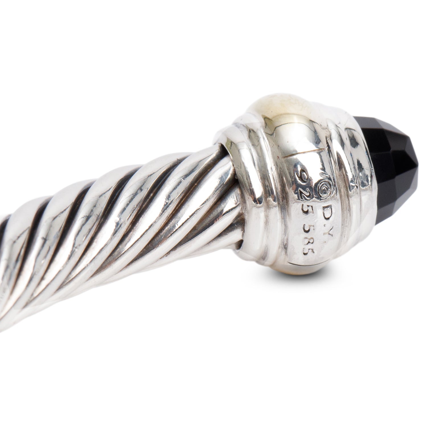 Sterling Silver & 14k Yellow Gold 5MM Cable Classics Bracelet with Black Onyx w/ Box