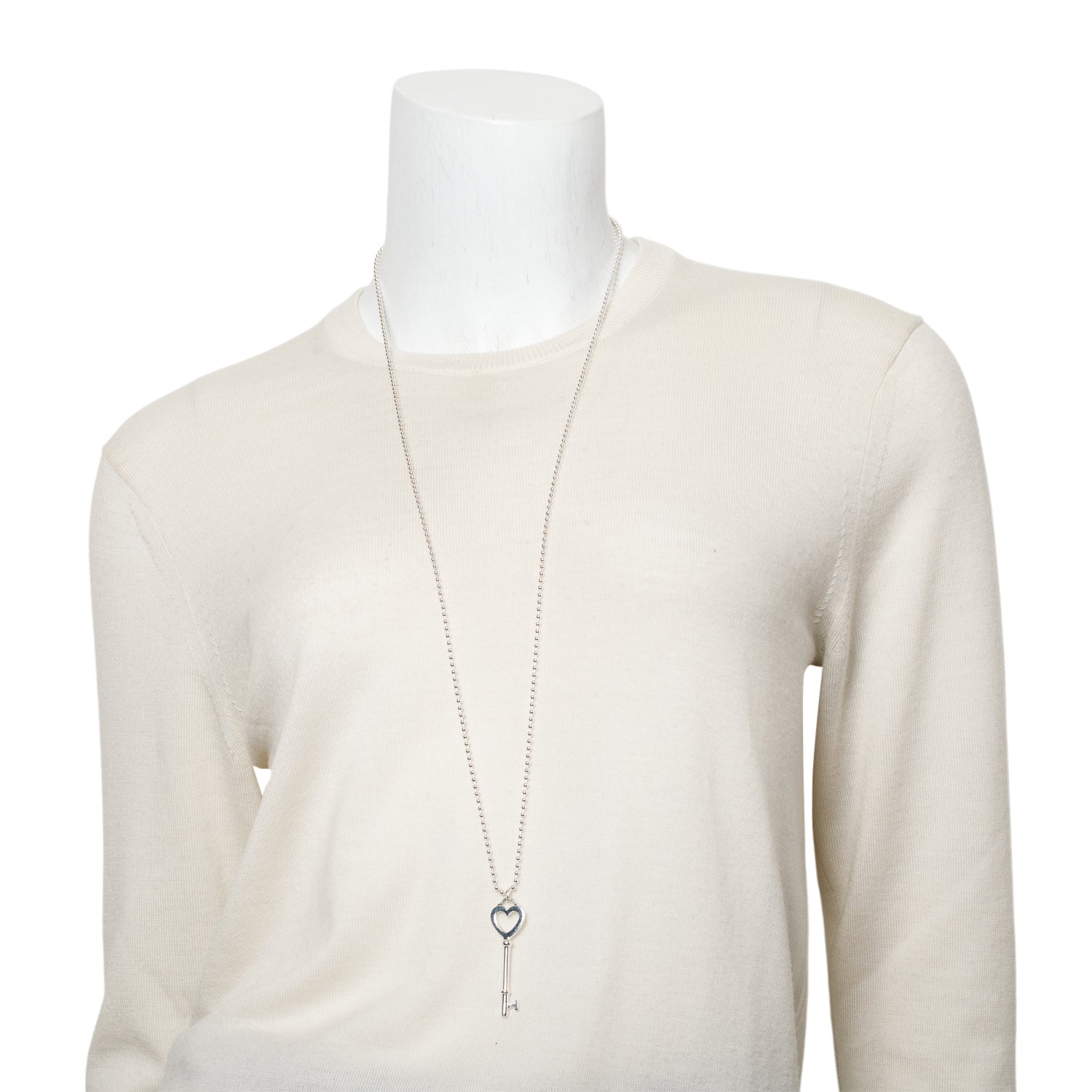 Sterling Silver Large Heart Key Pendant on Beaded Chain Necklace