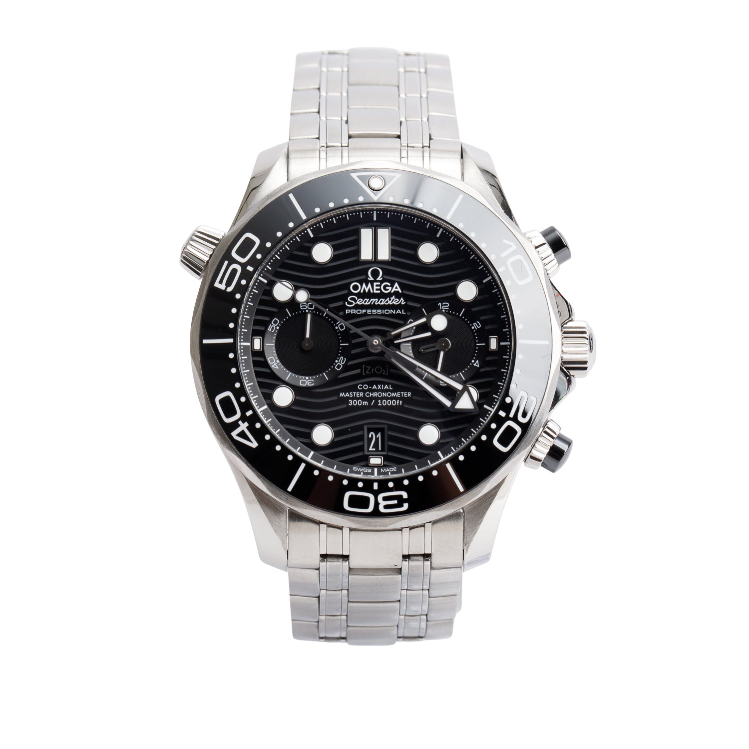2021 Stainless Steel Seamaster Diver 300M 44 MM Automatic Chronograph Watch Black Dial w/ Box & Papers