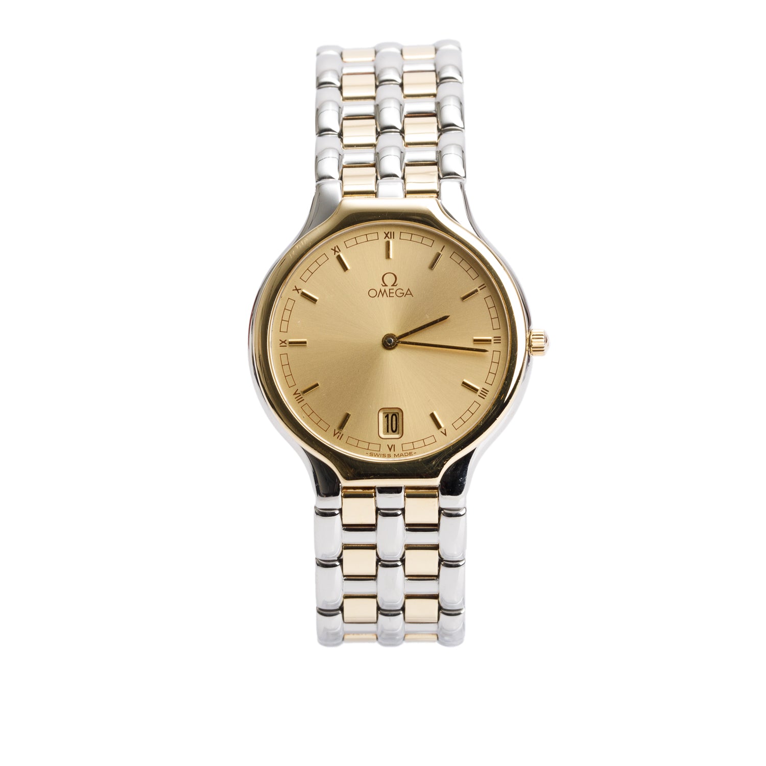 Vintage Stainless Steel & 18k Yellow Gold De Ville Symbol 32 MM Quartz Watch Gold Dial