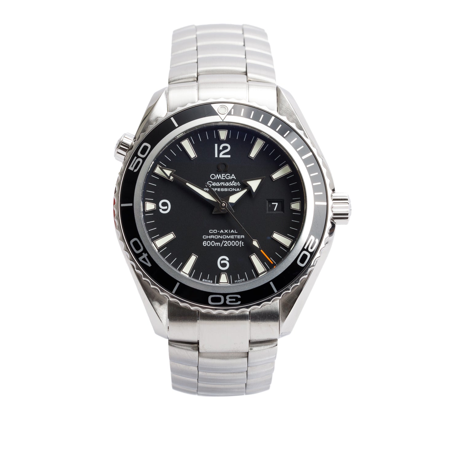 Stainless Steel Seamaster Planet Ocean Co-Axial Chronometer 45.5 MM Automatic Watch Black Dial w/ Box & Papers