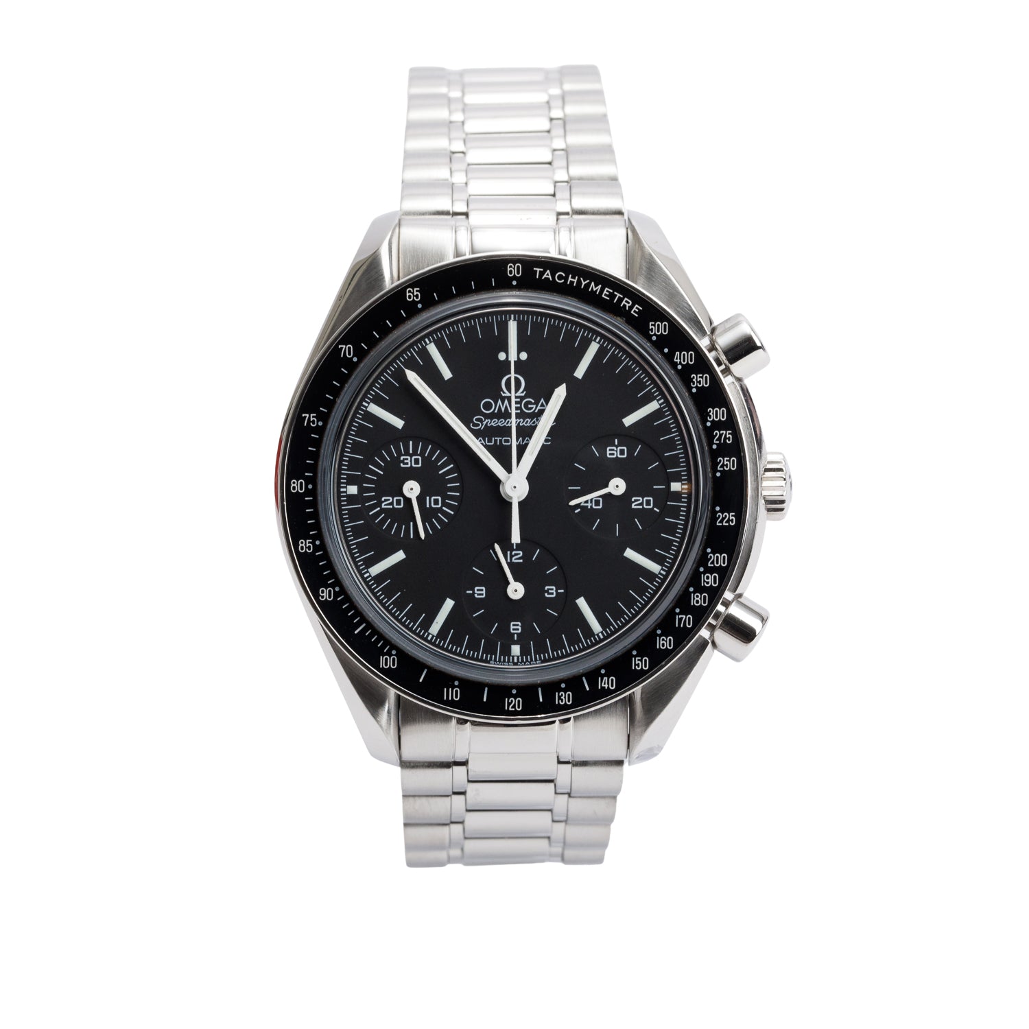 Stainless Steel Speedmaster Reduced 39 MM Automatic Chronograph Watch Black Dial w/ Box & Papers