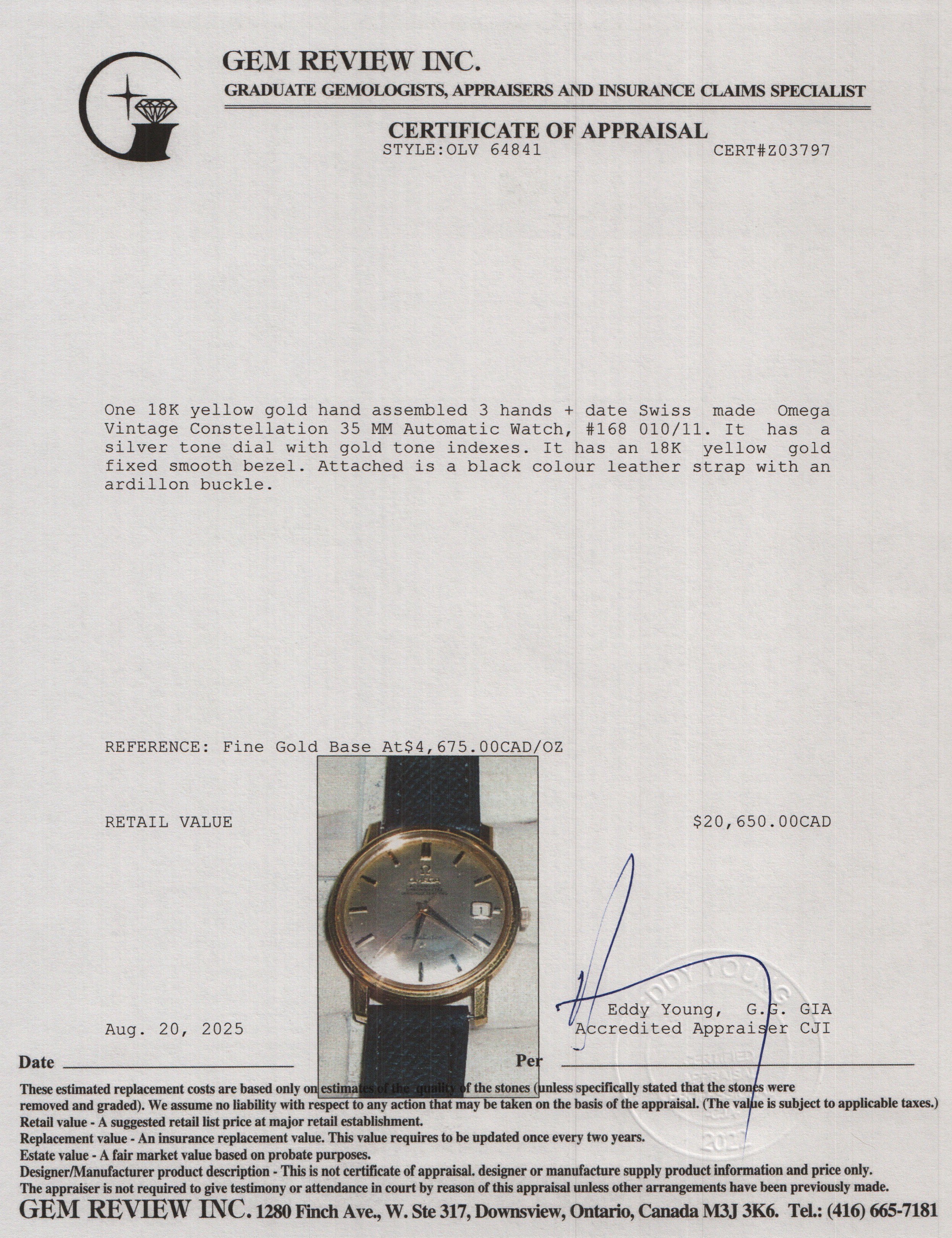 Vintage 18k Yellow Gold Constellation 35 MM Automatic Watch