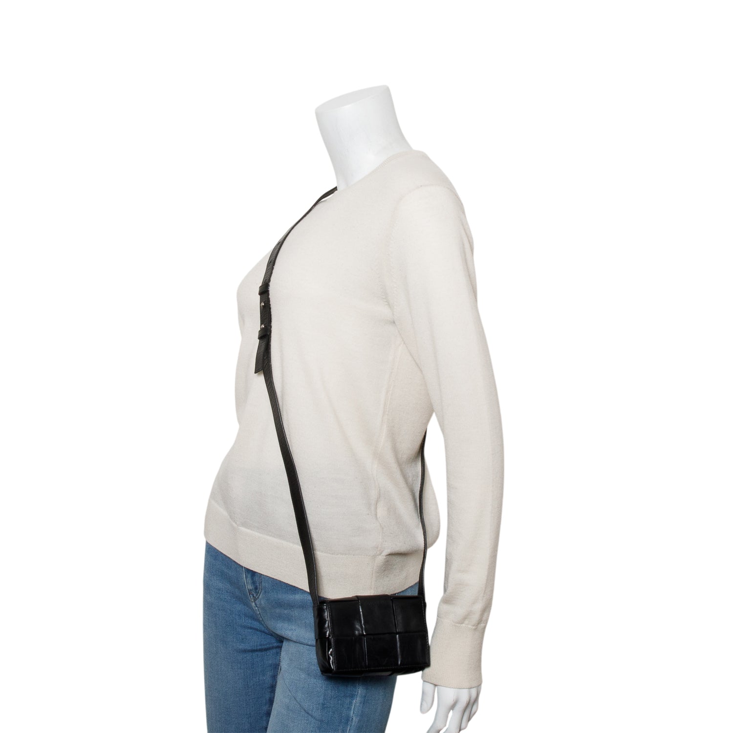 Black Paper Calfskin Maxi Intrecciato Extra Mini Cassette Crossbody Bag