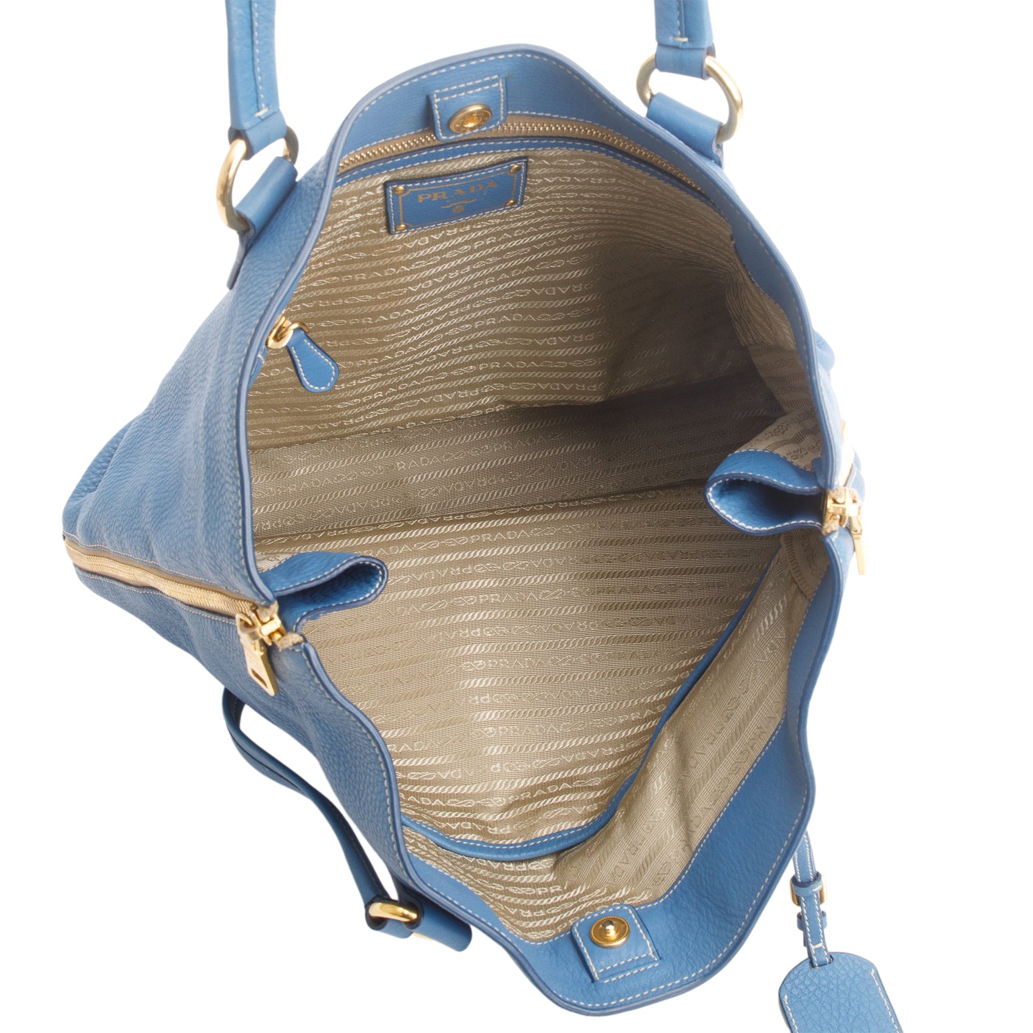 Blue Vitello Daino Size Zip Tote w/ Authenticity Card