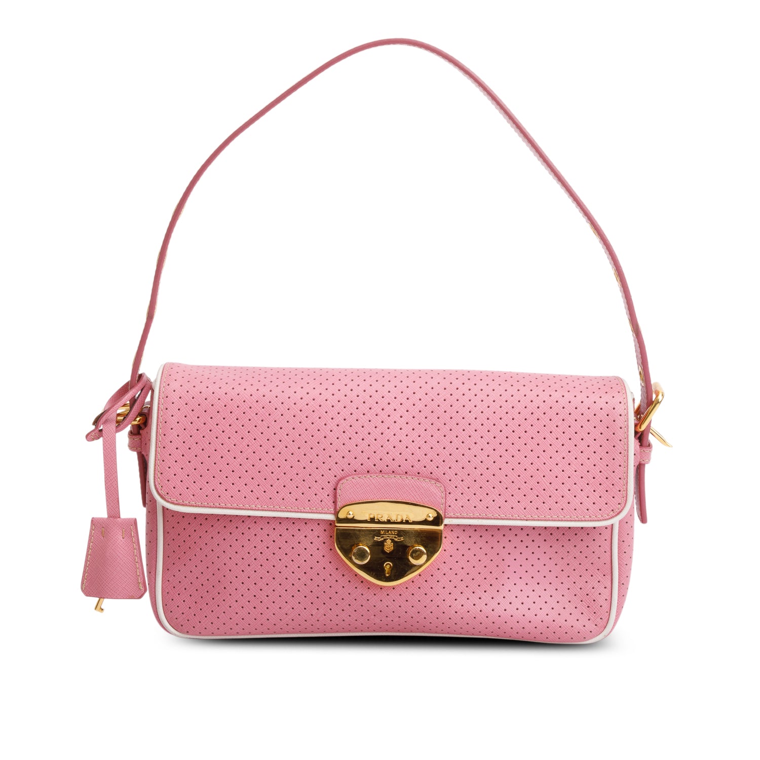 Pink Perforated Saffiano Leather Fori Baguette Bag