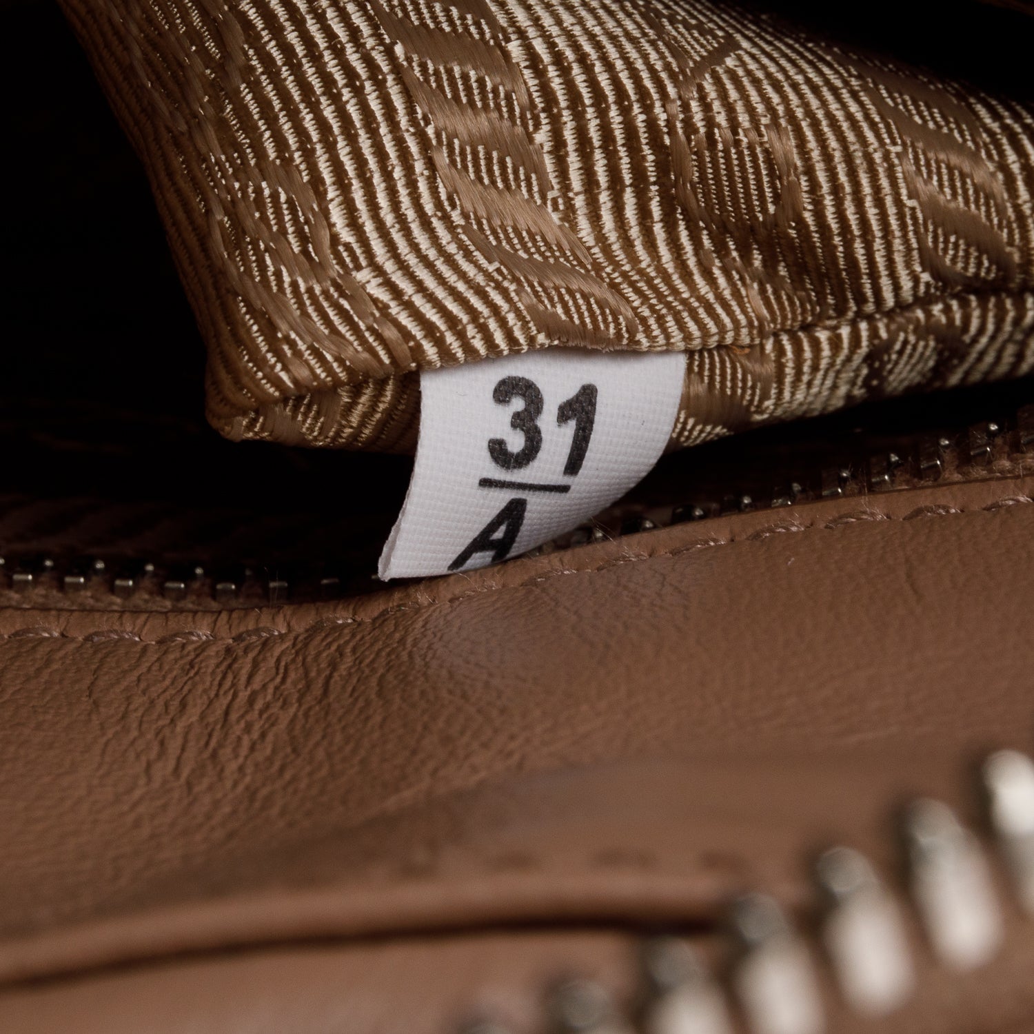 Condition: Very Good; slight creasing at exterior and interior leather; minor loss of shape at exterior.