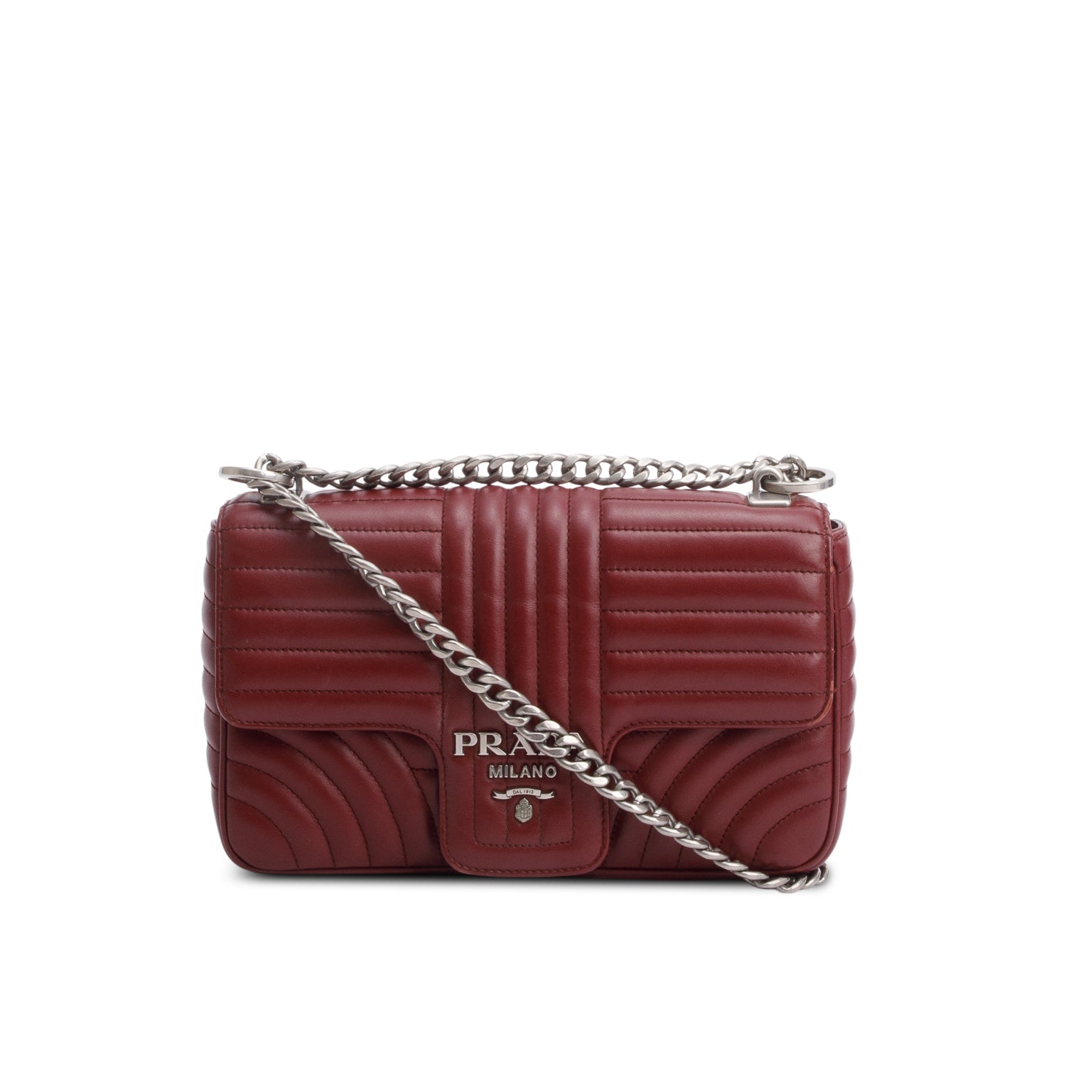 Burgundy Soft Calf Impunture Diagramme Medium Chain Flap Shoulder Bag