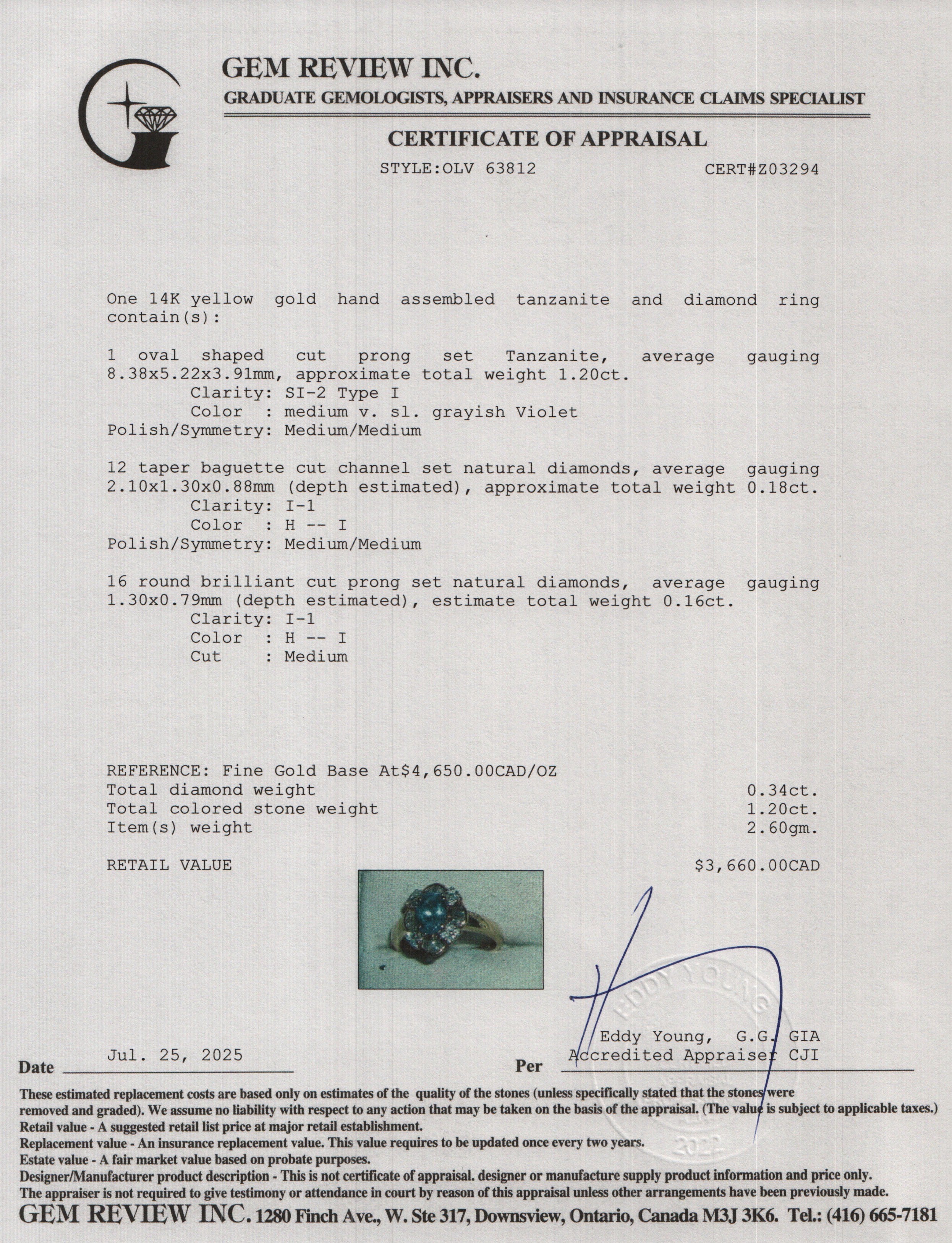 14k Yellow Gold Tanzanite & Diamond Ring, Size 6