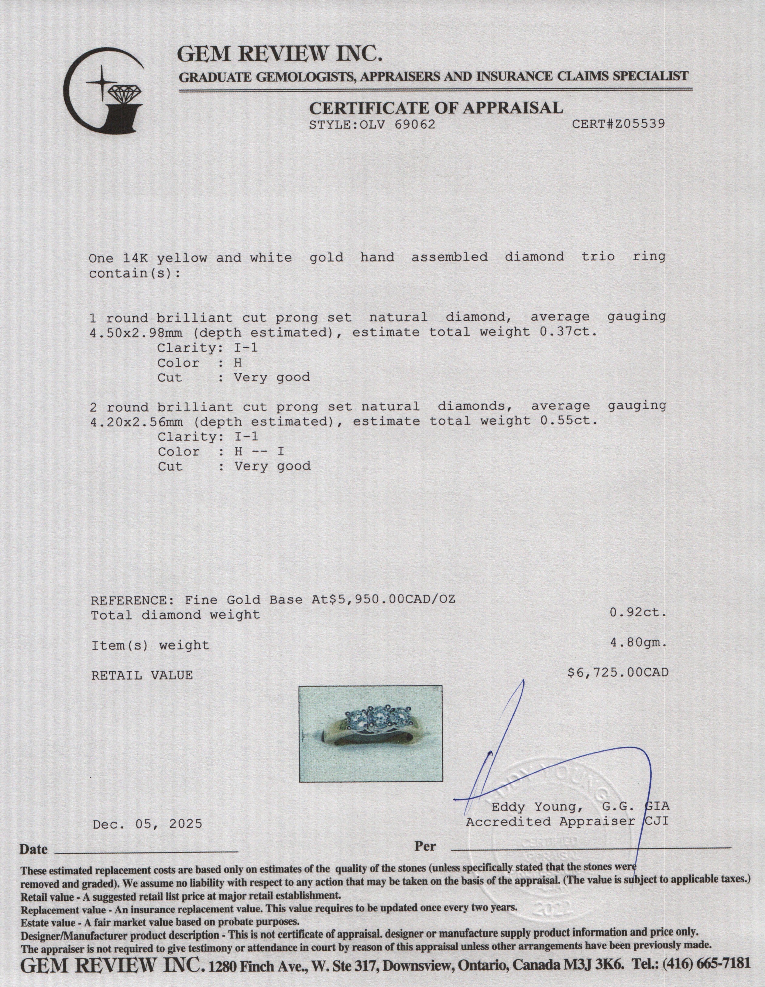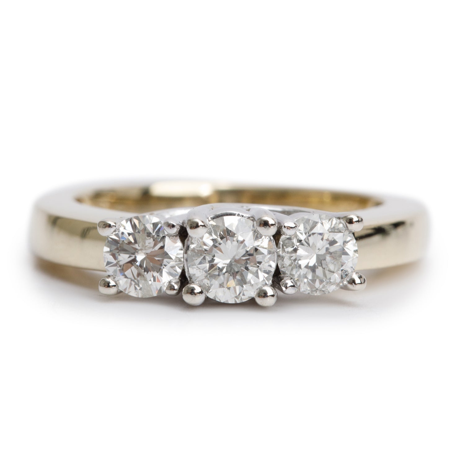 14k Yellow & White Gold Diamond Three-Stone Ring, Size 7