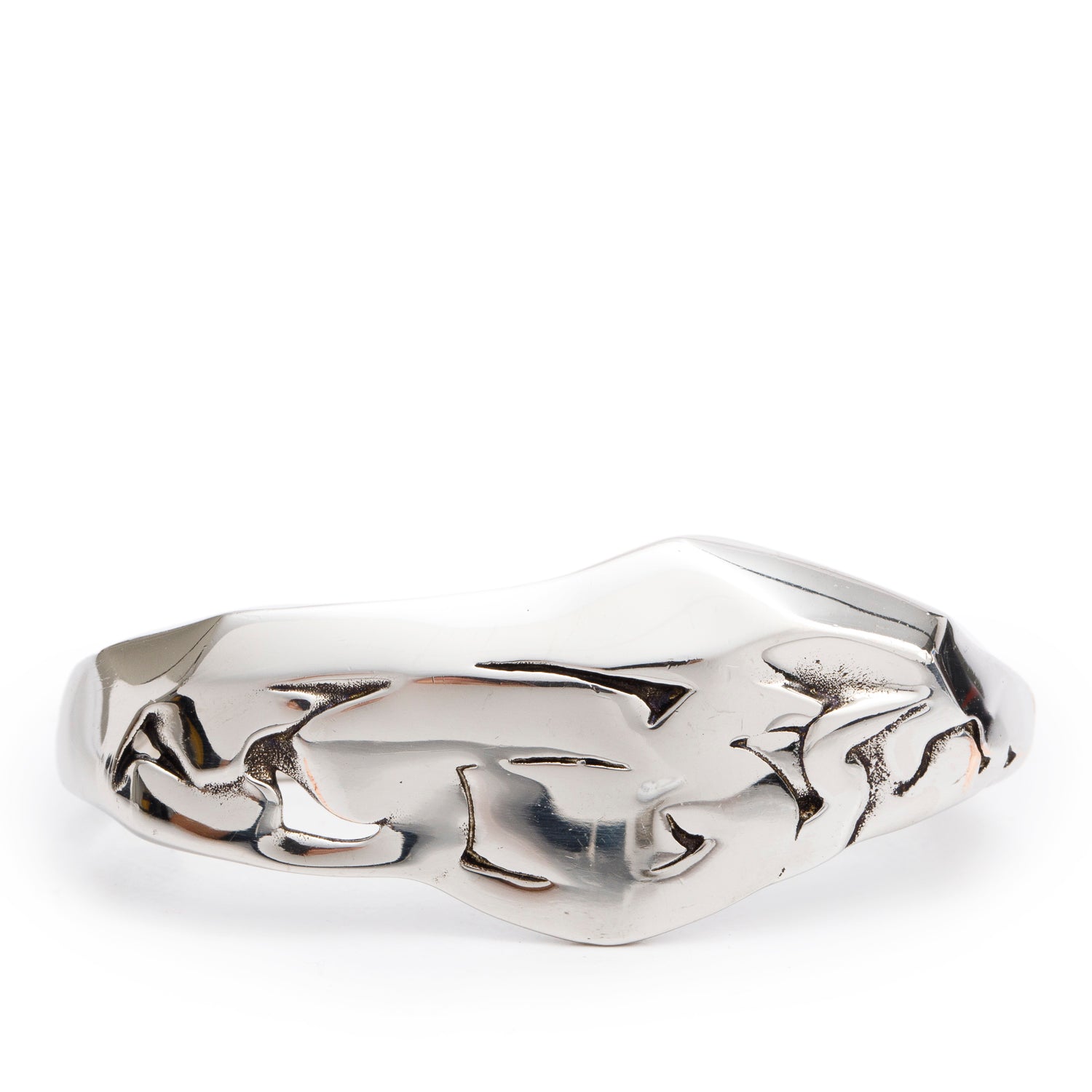 Silver Plated Molten Chain Double Ring, Size L