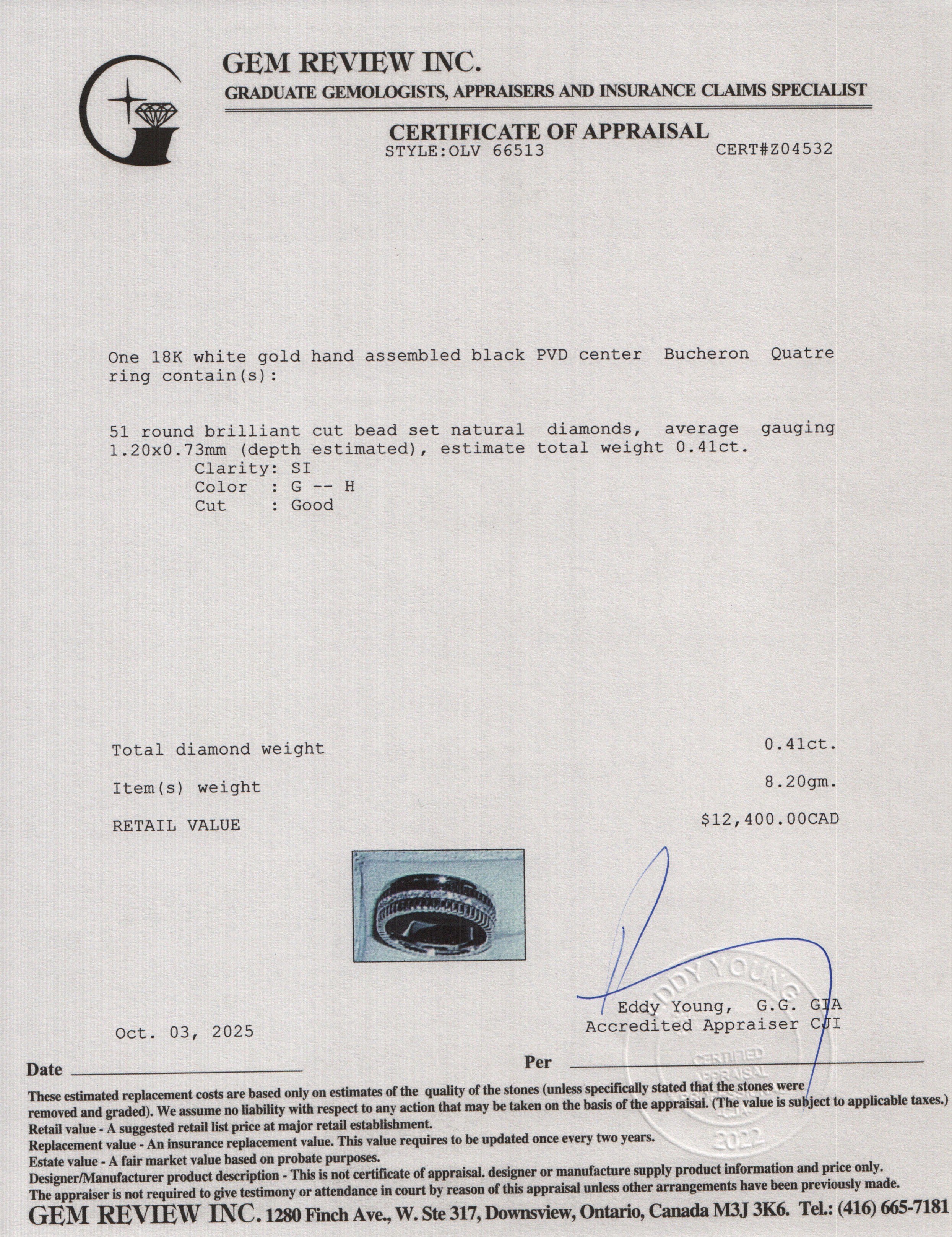 18k White Gold & Black PVD Black Edition Small Quatre Ring, Size 54 6.5