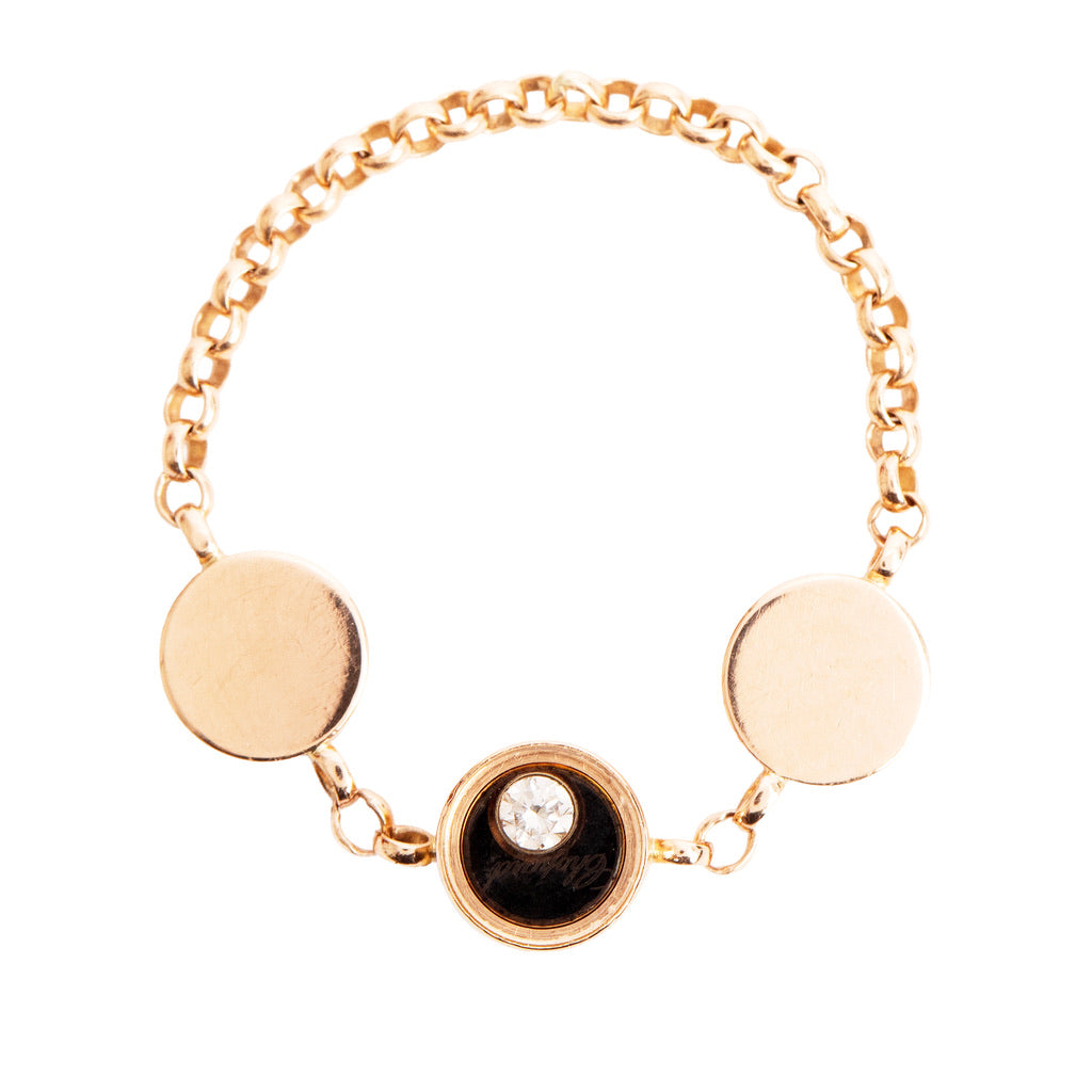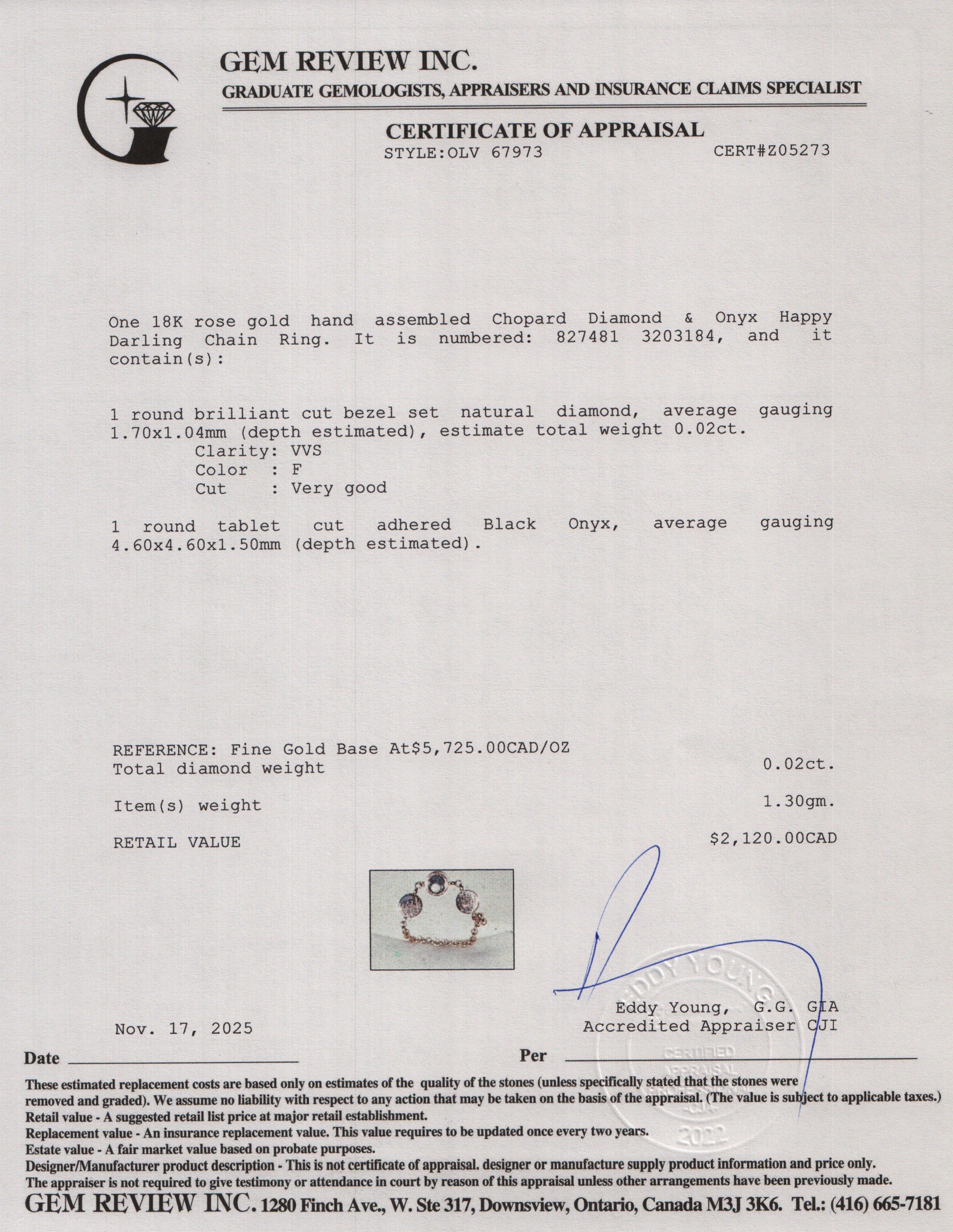 18k Rose Gold Diamond & Onyx Happy Darling Chain Ring, Size 4.5