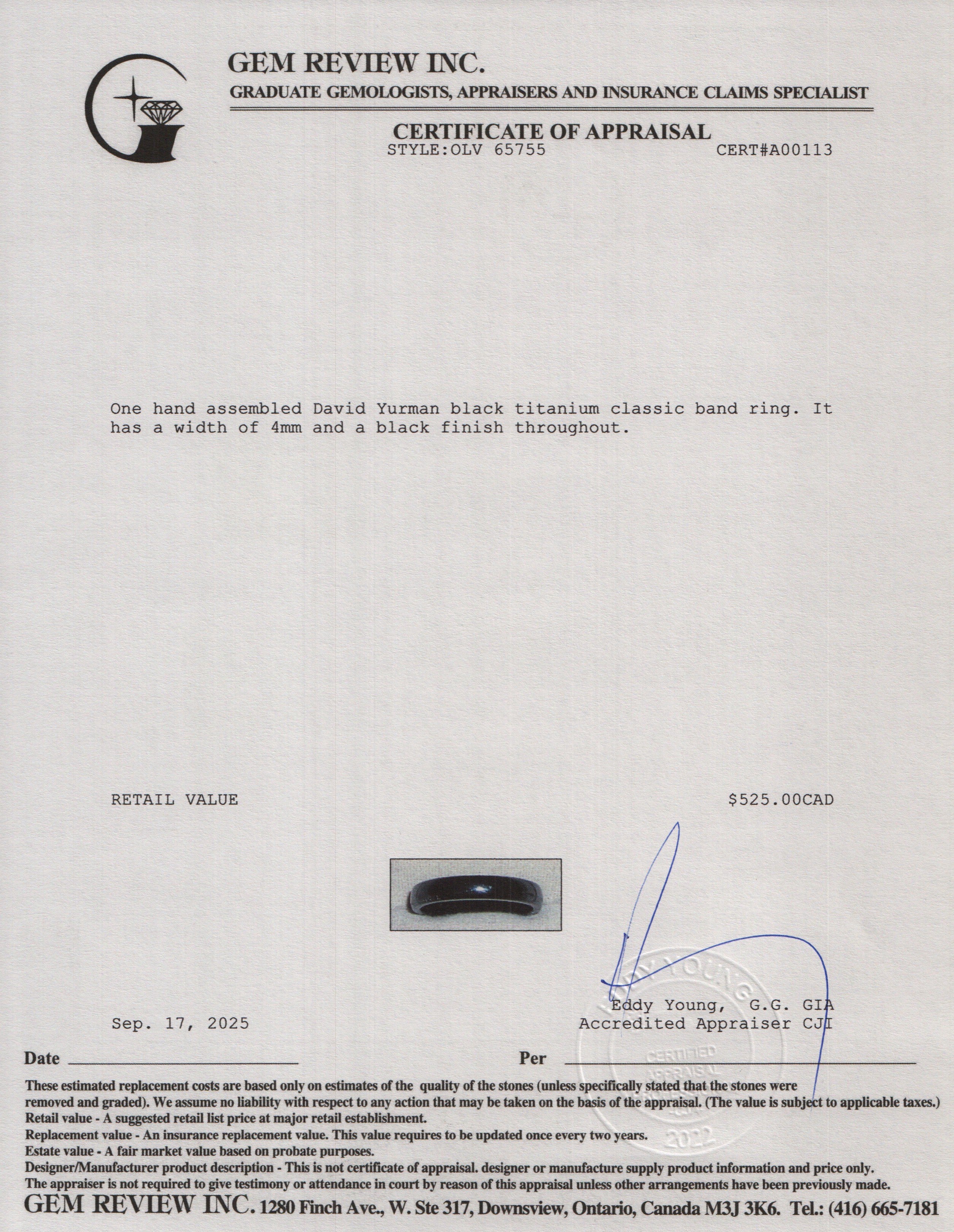 Black Titanium 4 MM Classic Band Ring, Size 9.75