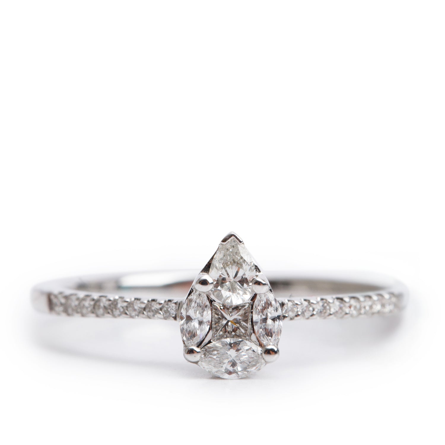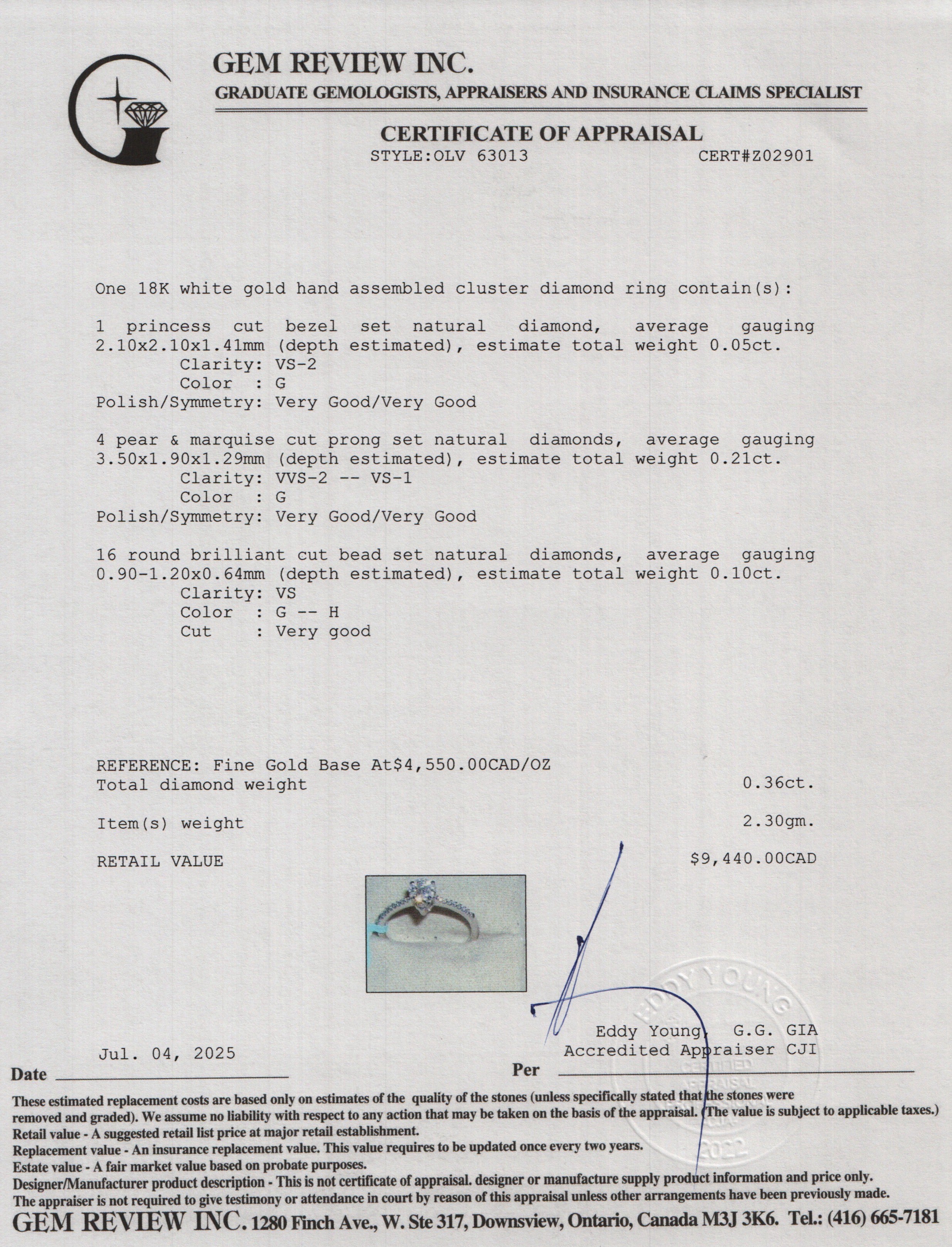 Effy 18k White Gold Cluster Diamond Ring, Size 7 w/ Box