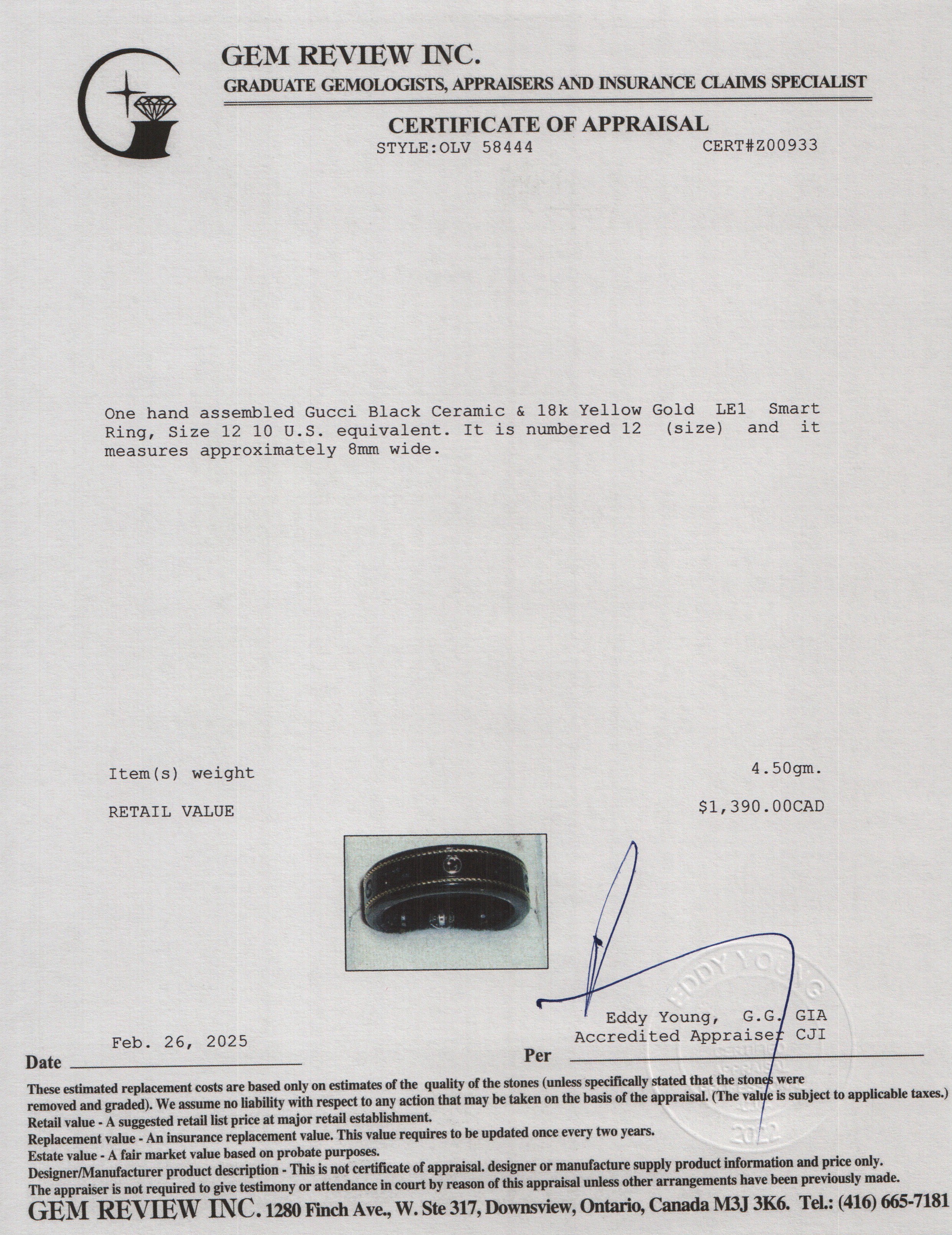 Black Ceramic & 18k Yellow Gold LE1 Smart Ring, Size 12 10 w/ Box & Charger
