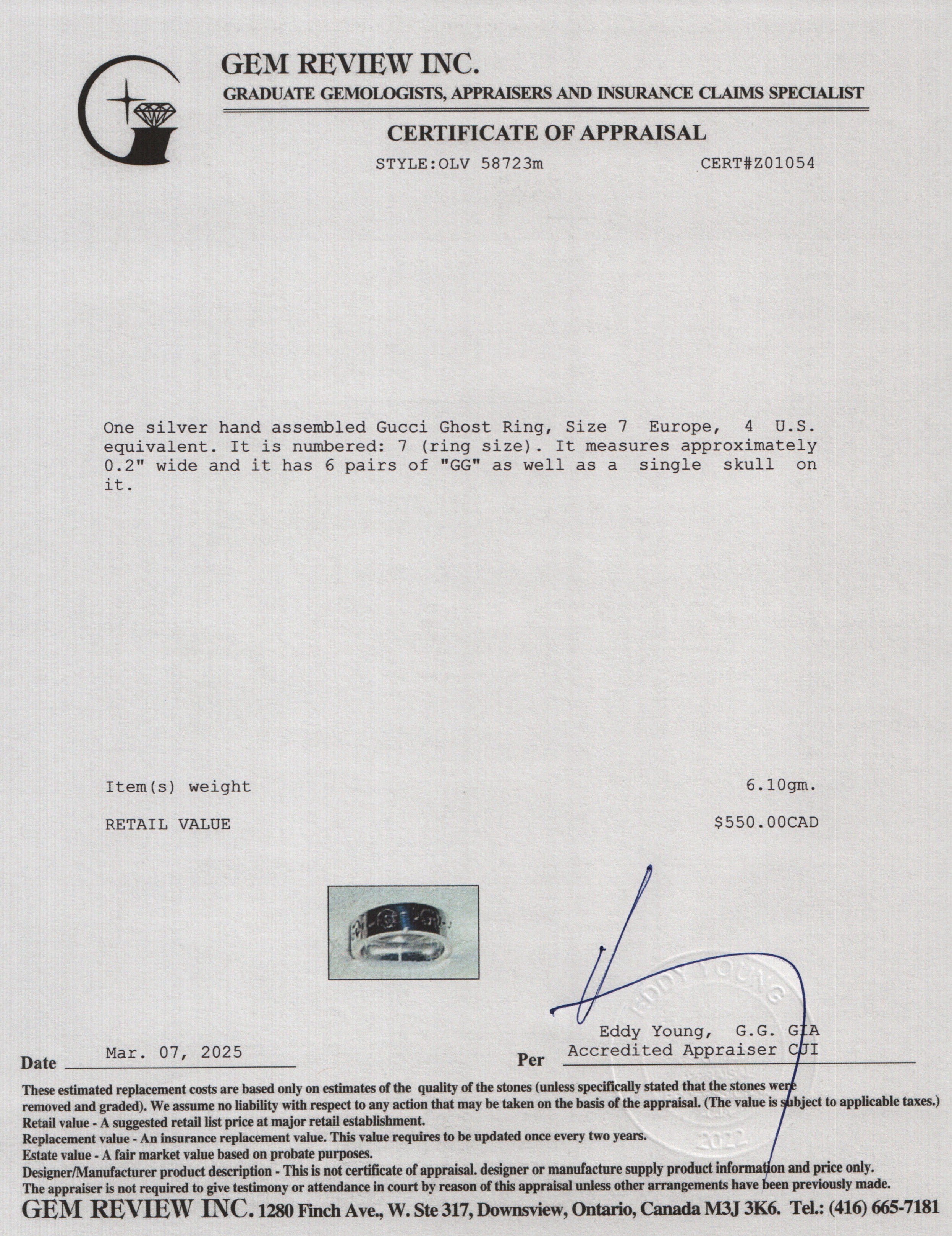 Sterling Silver Ghost Ring, Size 7 4 w/ Box