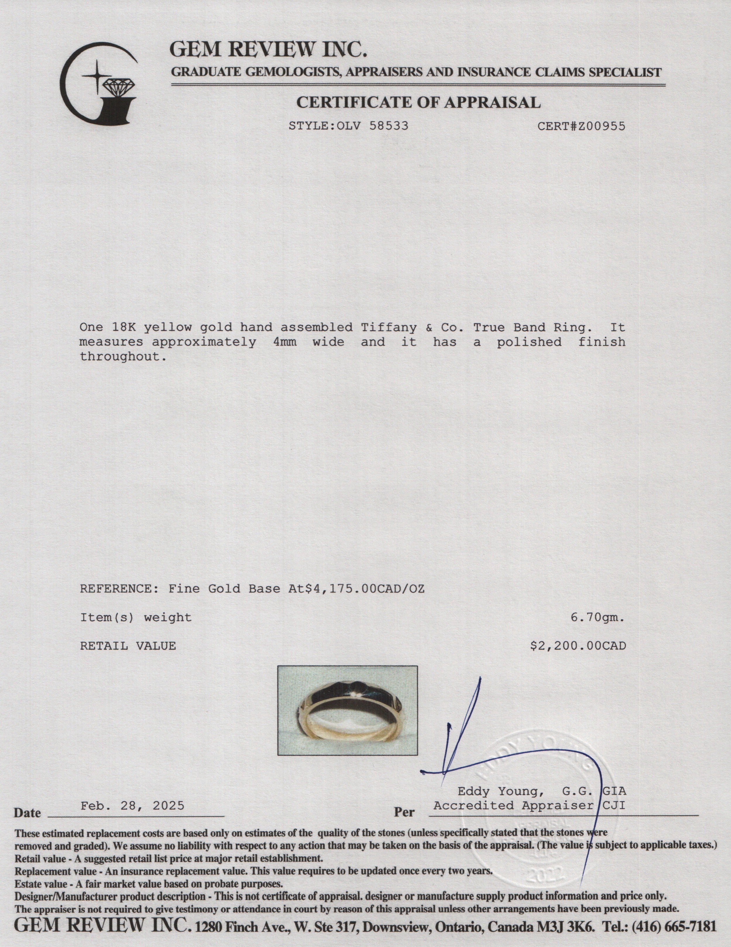 18k Yellow Gold True 4 MM Band Ring, Size 9.5 w/ Box