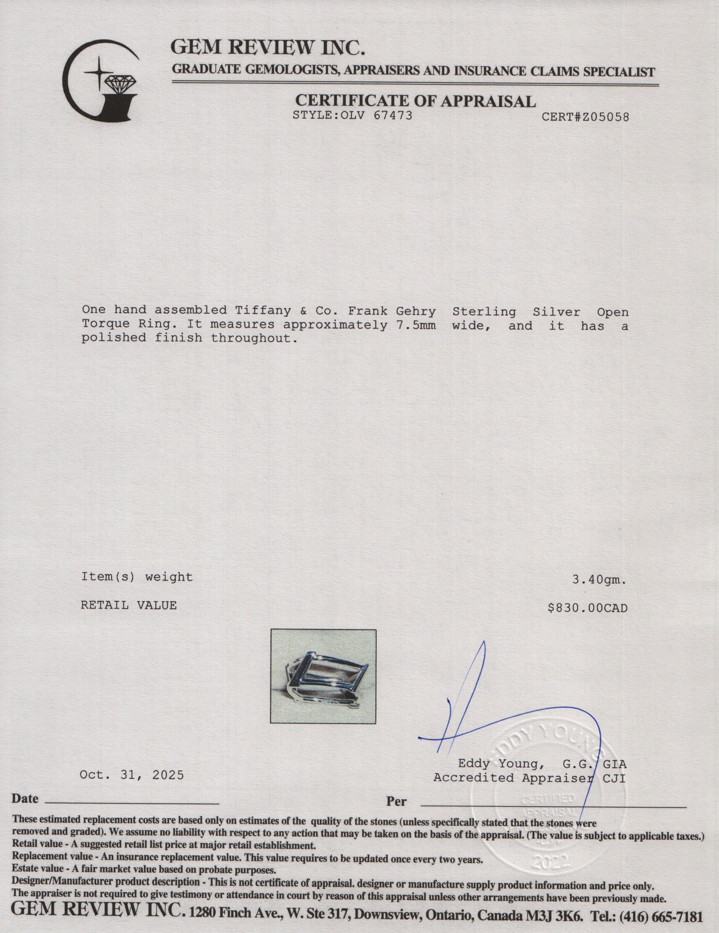Frank Gehry Sterling Silver Open Torque Ring, Size 5