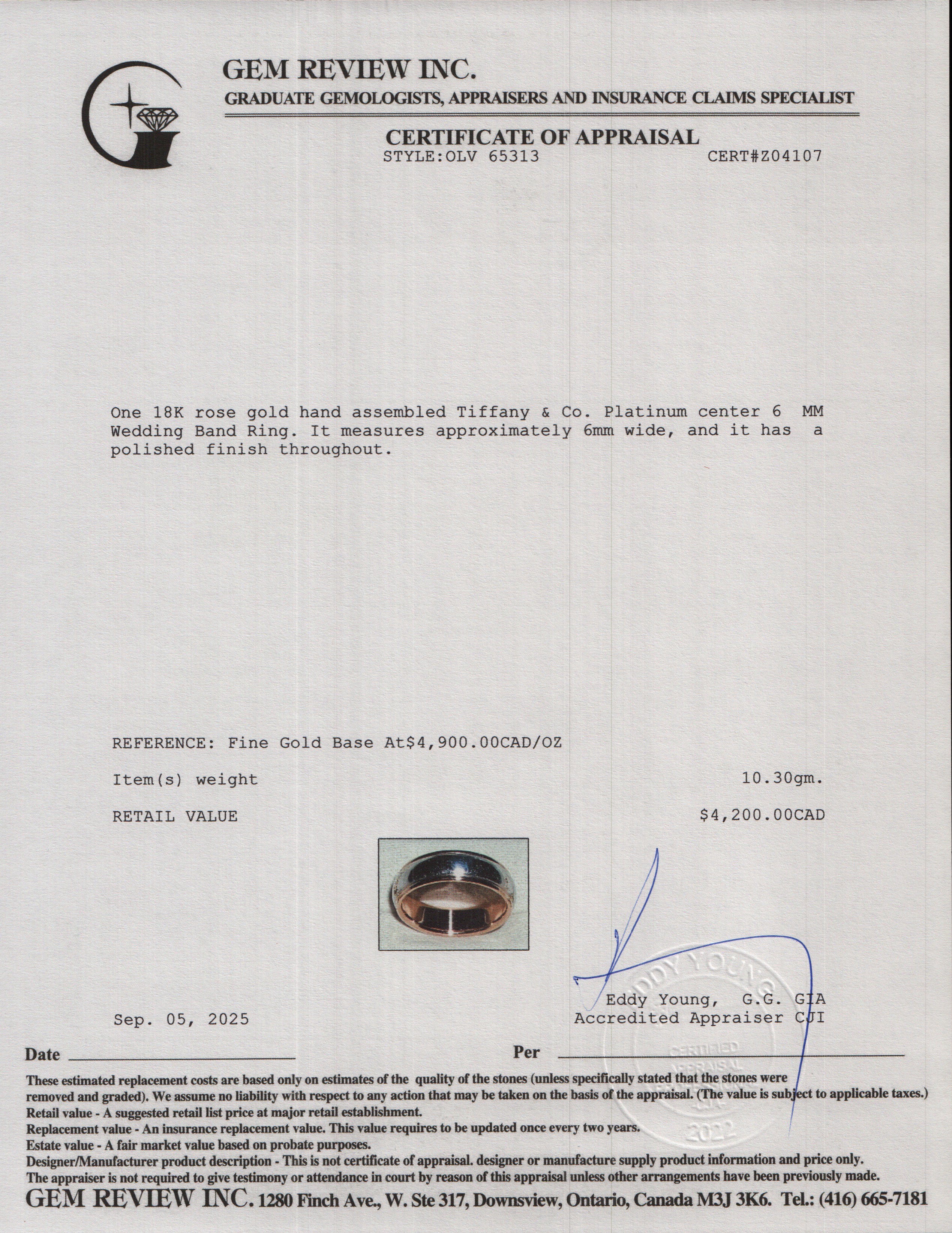 Platinum & 18k Rose Gold 6 MM Wedding Band Ring, Size 8