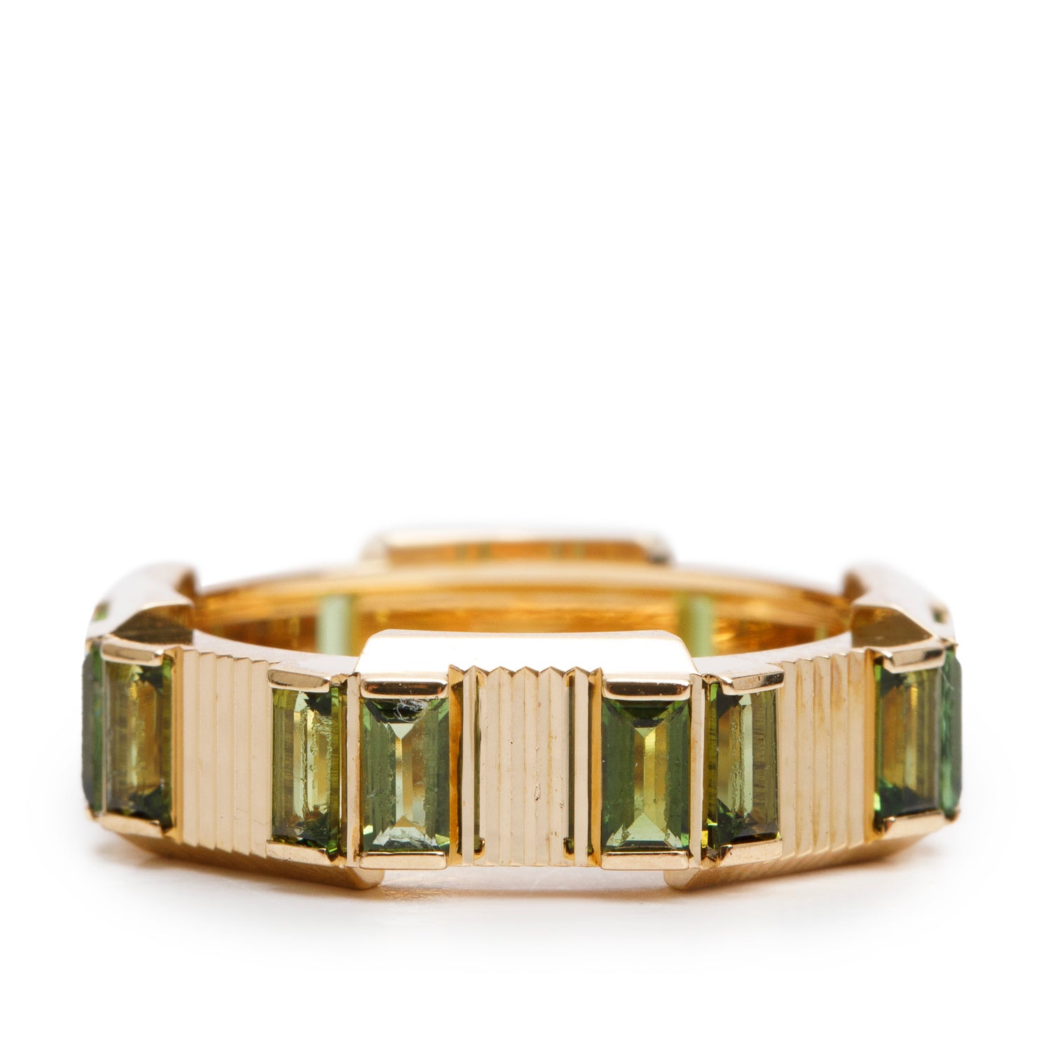 18k Yellow Gold Tourmaline Link to Love Striped Ring, Size 14 6.75
