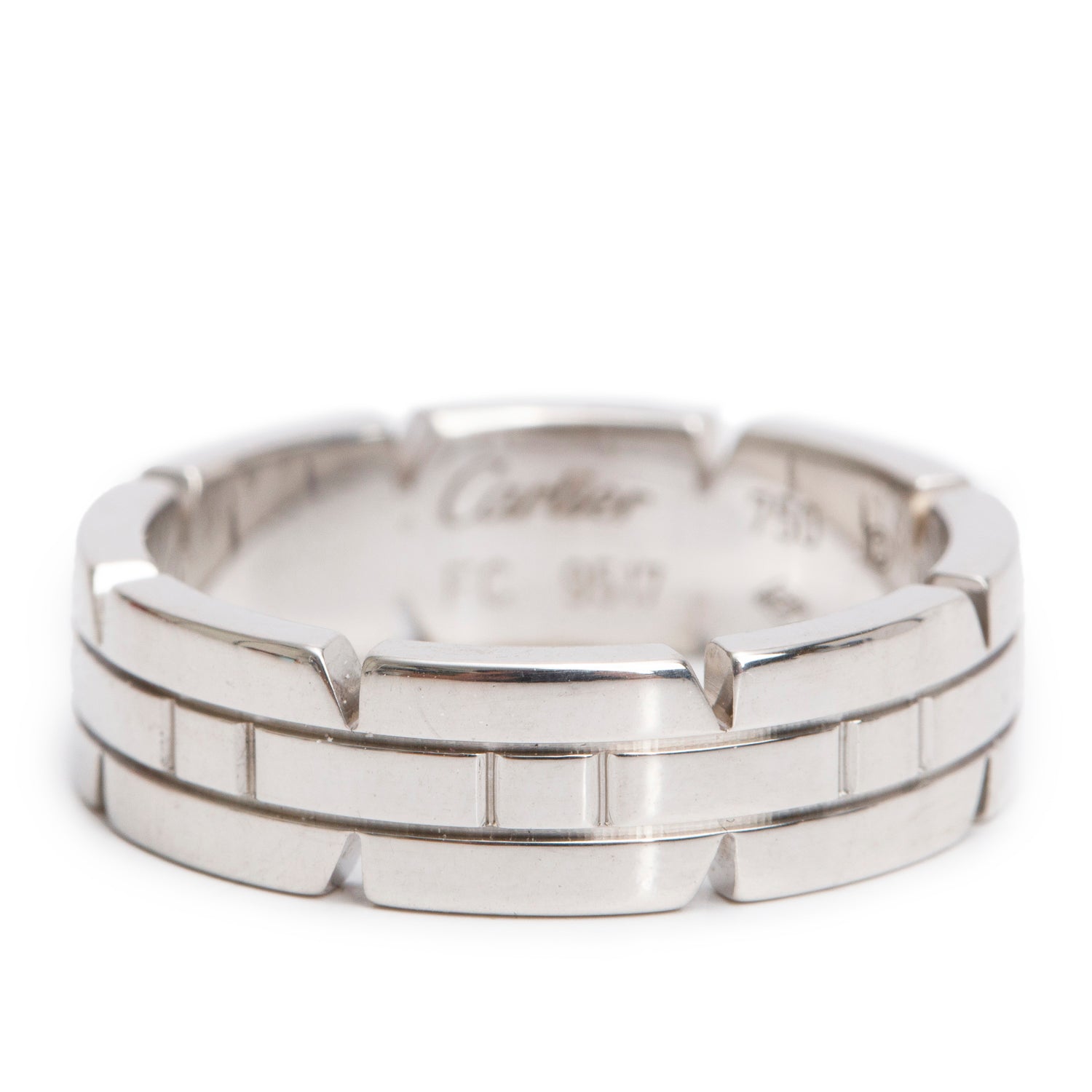 18k White Gold Tank Francaise Ring, Size 57 8 w/ Box & Certificate