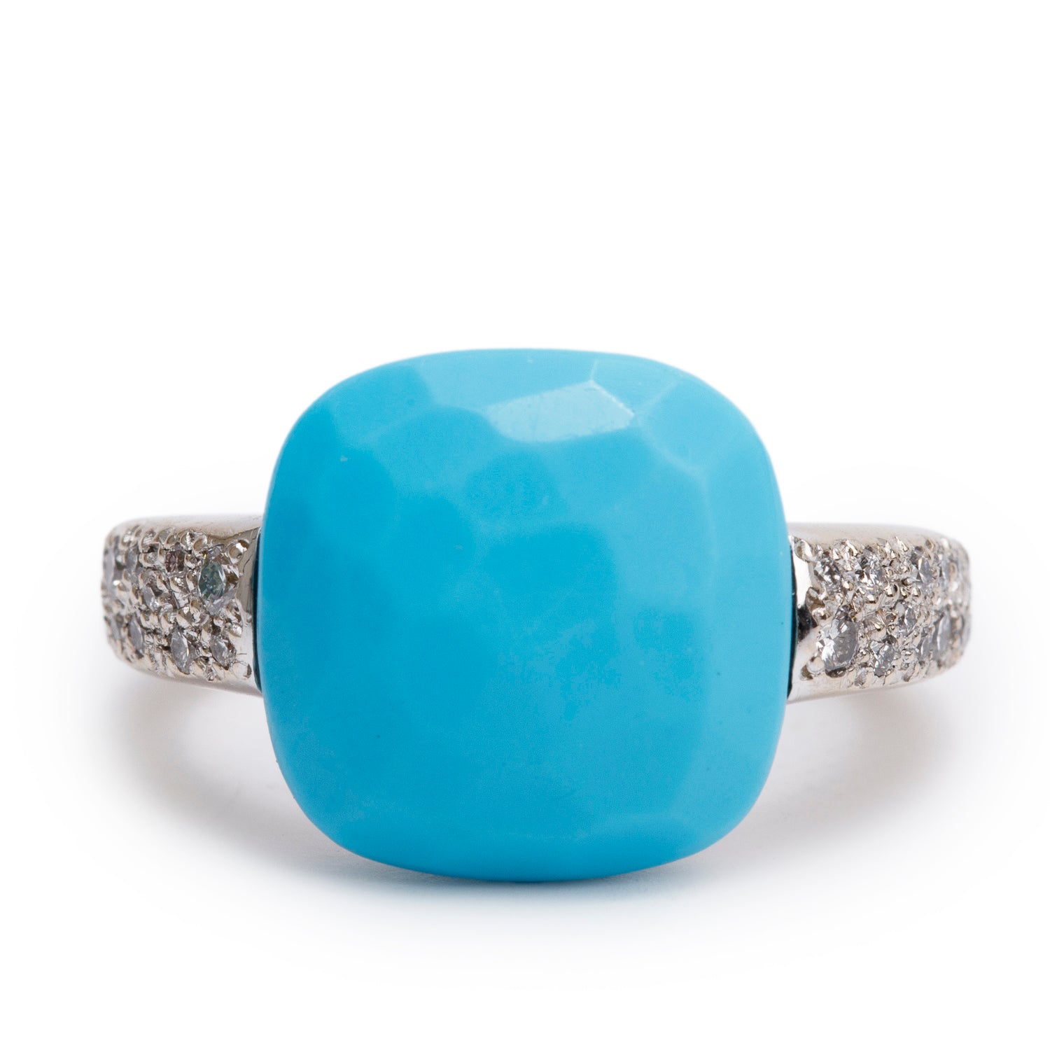 18k White Gold Turquoise & Diamond Capri Ring, Size 4
