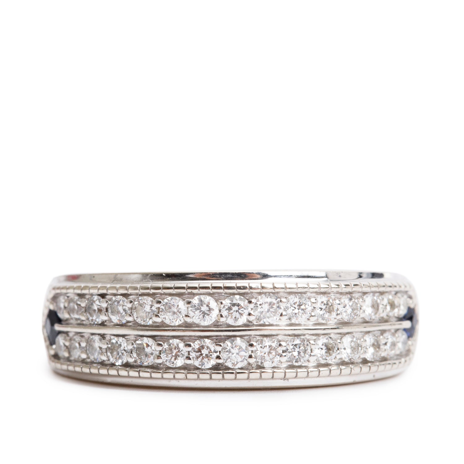 14k White Gold Love Double Row Diamond Gents Band Ring, Size 9