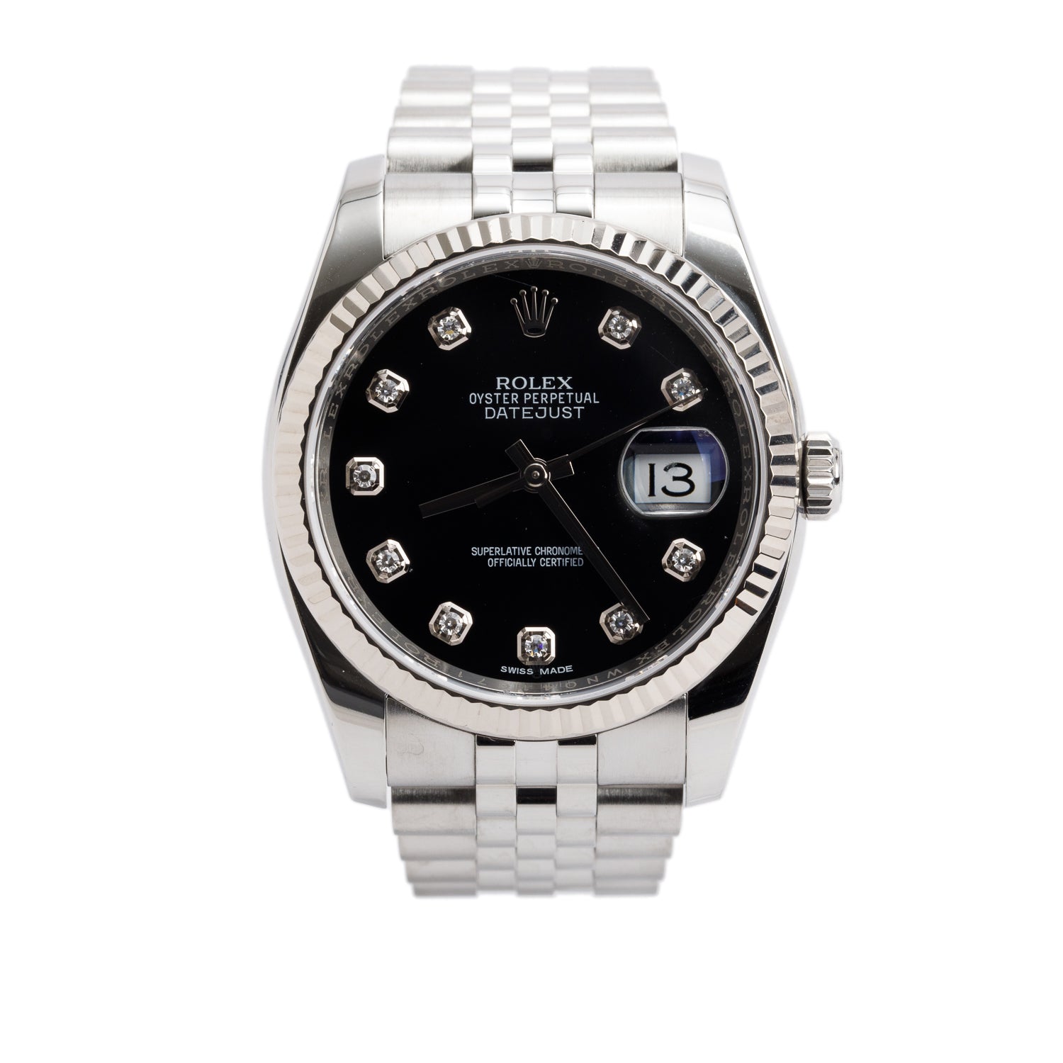Stainless Steel Datejust 36 MM Automatic Watch Black Diamond Dial 116234 w/ Box & Papers