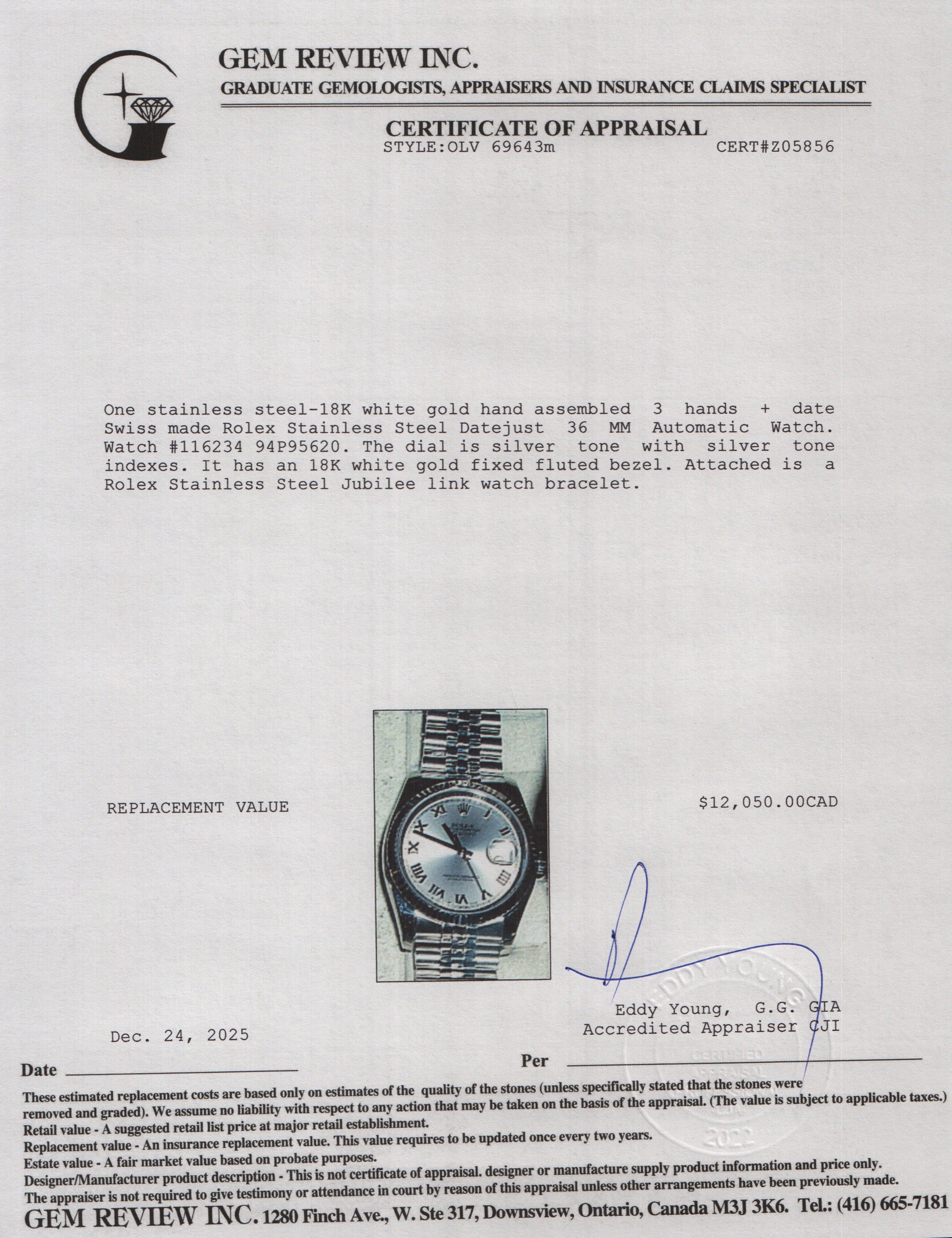 Stainless Steel Datejust 36 MM Automatic Watch Silver Roman Dial 116234 w/ Box