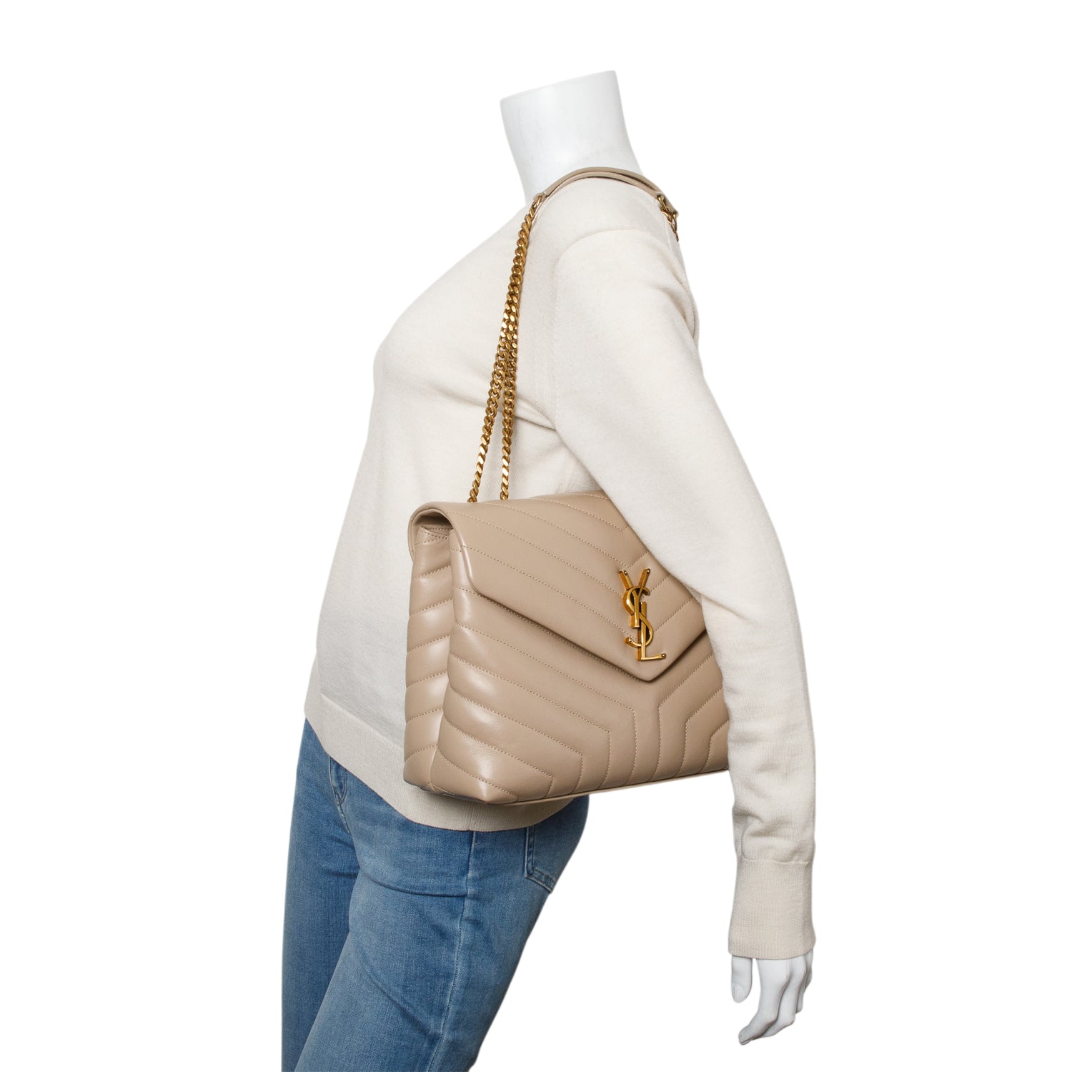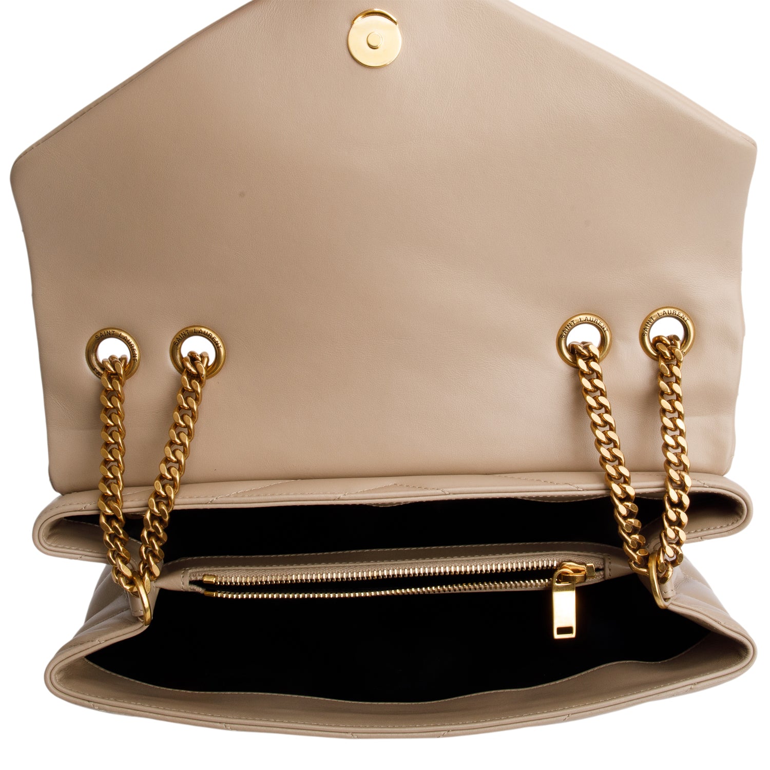 2022 Beige Calfskin Y Quilted Monogram Medium Loulou Chain Satchel w/ Box