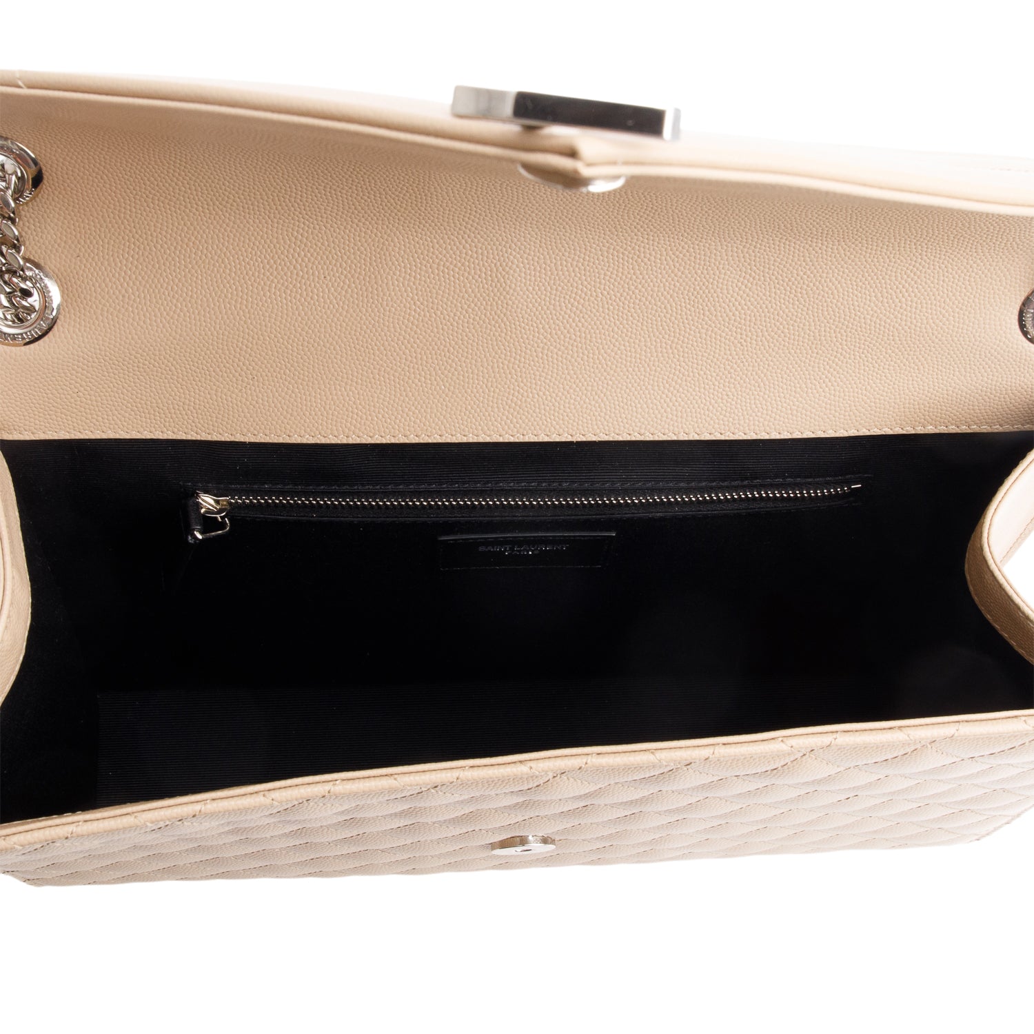 Beige Quilted Grain De Poudre Leather Large Envelope Chain Bag